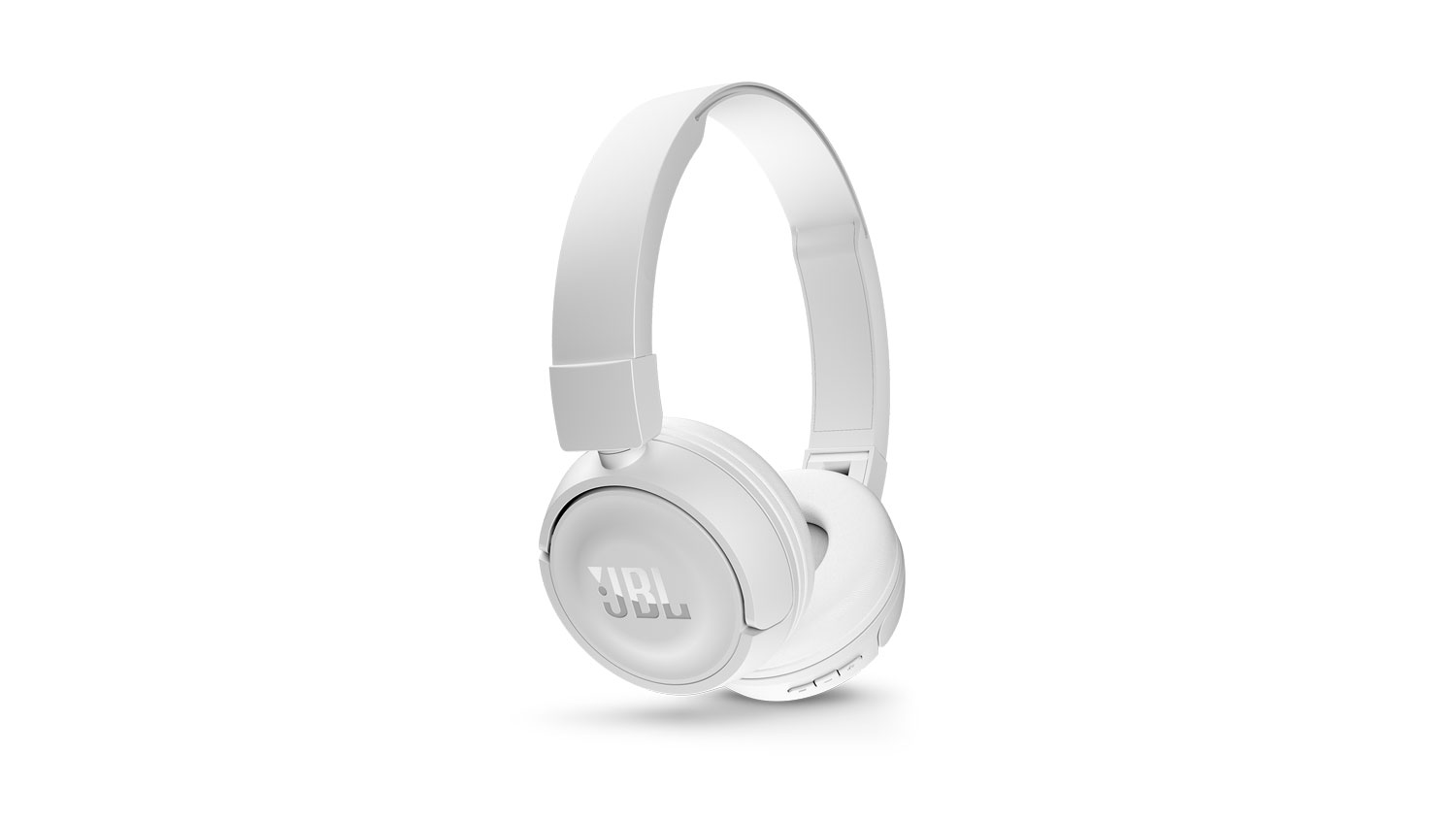 Introducing JBL T450BT on-ear wireless headphones. They’re flat-folding, lightweight, comfortable and compact. Under the hood, a pair of 32mm drivers punch out some serious bass, reproducing the powerful JBL Pure Bass sound you’ve experienced in much bigger venues. Music and call controls/microphone are placed on the earcup. And because your music should go where you go, you’ll get up to 10 hours of uninterrupted audio playback on a single charge.