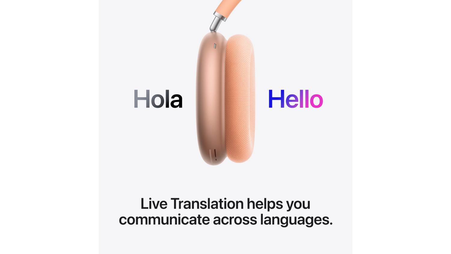 2Live Translation with AirPods works on AirPods Max 2 with the latest firmware when paired with an Apple Intelligence–enabled iPhone running iOS 26.4 and later. Available in beta. Some features may not be available in all regions or languages; for more information, see apple.com/nz/ios/feature-availability.
