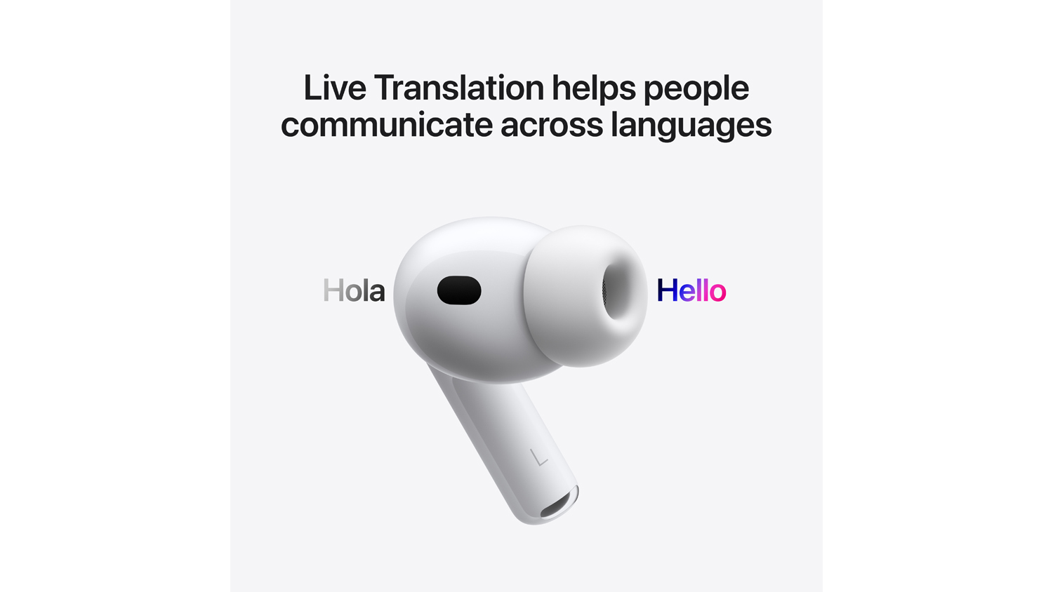 3Live Translation with AirPods works on AirPods 4 with Active Noise Cancellation,andAirPods Pro 2 and later, with the latest firmware when paired with an Apple Intelligence–enabled iPhonerunning iOS 26 andlater. SupportsEnglish(UK, US), French (France), German, Portuguese (Brazil) and Spanish (Spain). For more information, see apple.com/nz/ios/feature-availability.