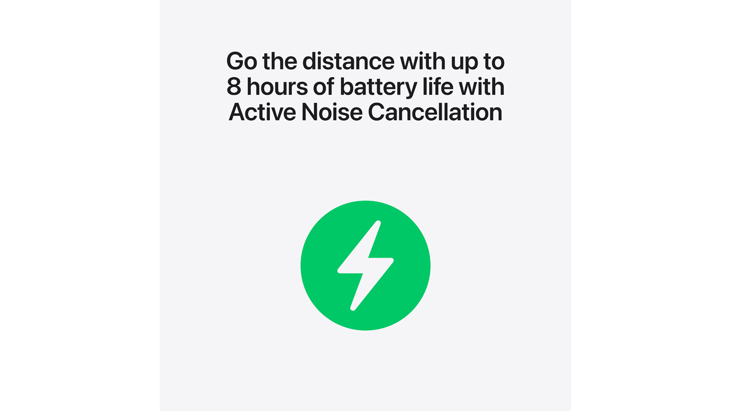 | Battery Life/ Playtime with Full-charge | Up to 8 hours of listening time on a single charge with Active Noise Cancellation enabled (up to 7.5 hours with Spatial Audio and Head Tracking enabled) |