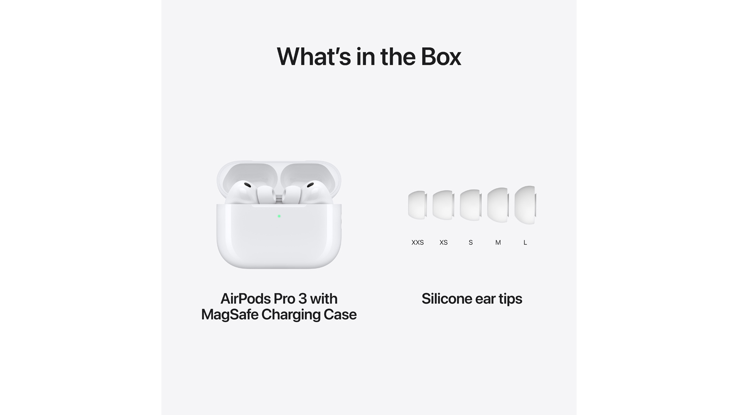 AirPods Pro 3. Up to 2x more Active Noise Cancellation than AirPods Pro 2.1 Now with heart rate sensing2, Live Translation3, longer battery life4 and advancements in hearing health.5 Redesigned for a more secure fit.4