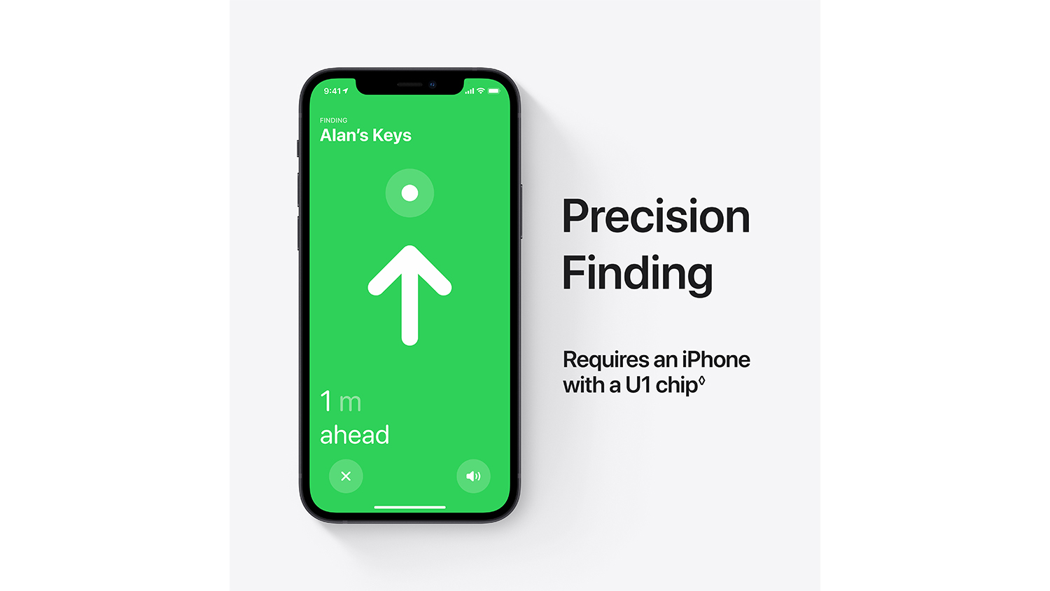 1Testing conducted by Apple in March 2021 using preproduction AirTag units and software paired with iPhone 11, iPhone 11 Pro, iPhone 11 Pro Max, iPhone 12 mini, iPhone 12, iPhone 12 Pro and iPhone 12 Pro Max units running preproduction software. Battery life based on an everyday use of four play sound events and one Precision Finding event per day. Battery life varies with usage, environmental conditions, replacement battery manufacturer and many other factors; actual results will vary.