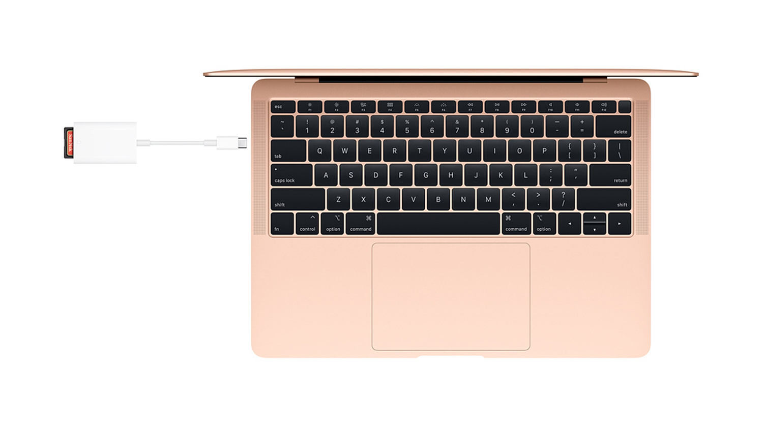 A handy on-the-go solution for transferring documents and digital files from your memory card to your device, this USB-C to SD Card Reader by Apple features a sleek and travel-sized structure with a fast transfer rate. It is also backward compatible with most adapters and SD cards.