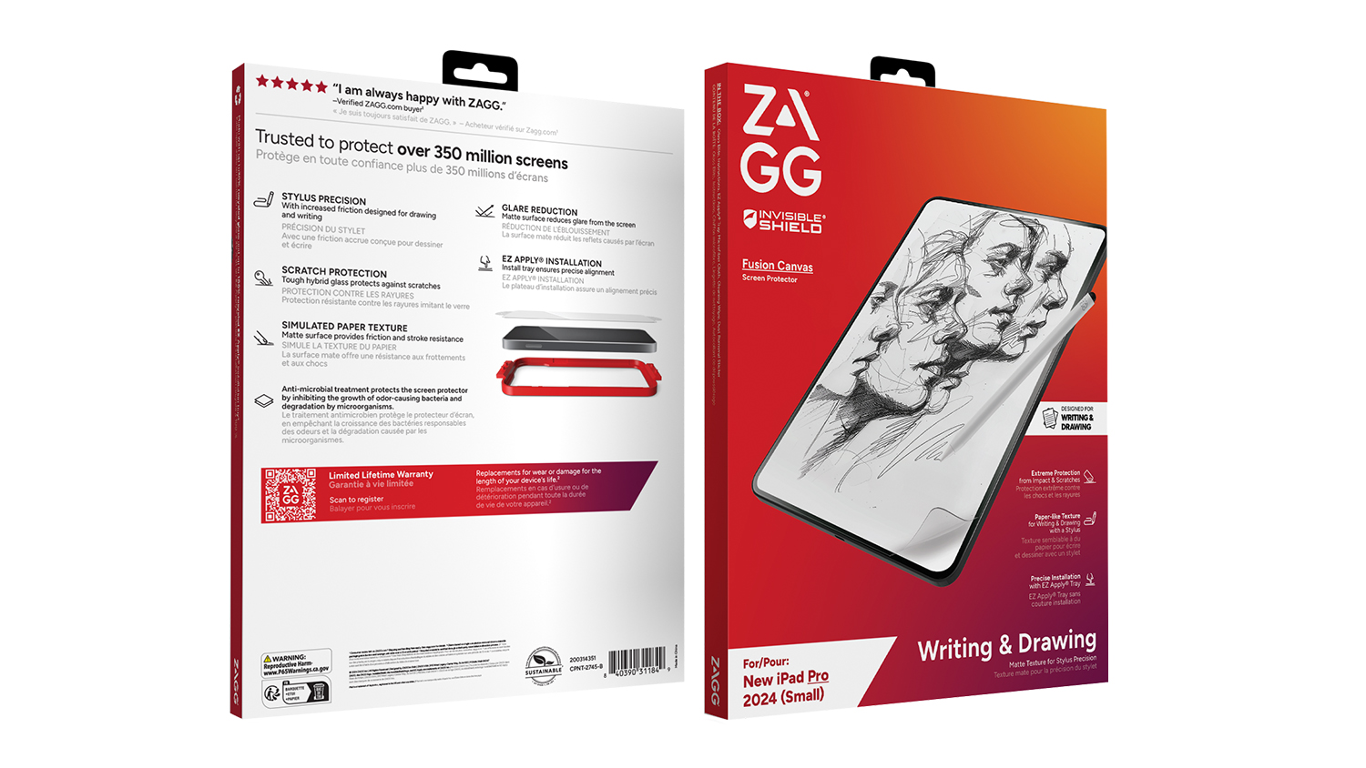 Reliable protection meets enhanced precision in this Zagg InvisibleShield Fusion Canvas Screen Protector for iPad Pro 11" M4M5. Ideal for artists and creators alike, this accessory boasts a matte surface with a simulated paper texture that ensures smooth stylus strokes. It is also constructed with a flexible polymer material to ensure it guards your display against abrasion and everyday wear.