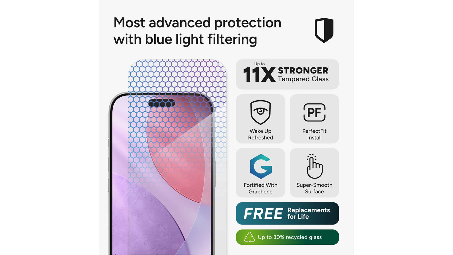 *Tested to be up to 11x stronger than traditional glass screen protectors.
