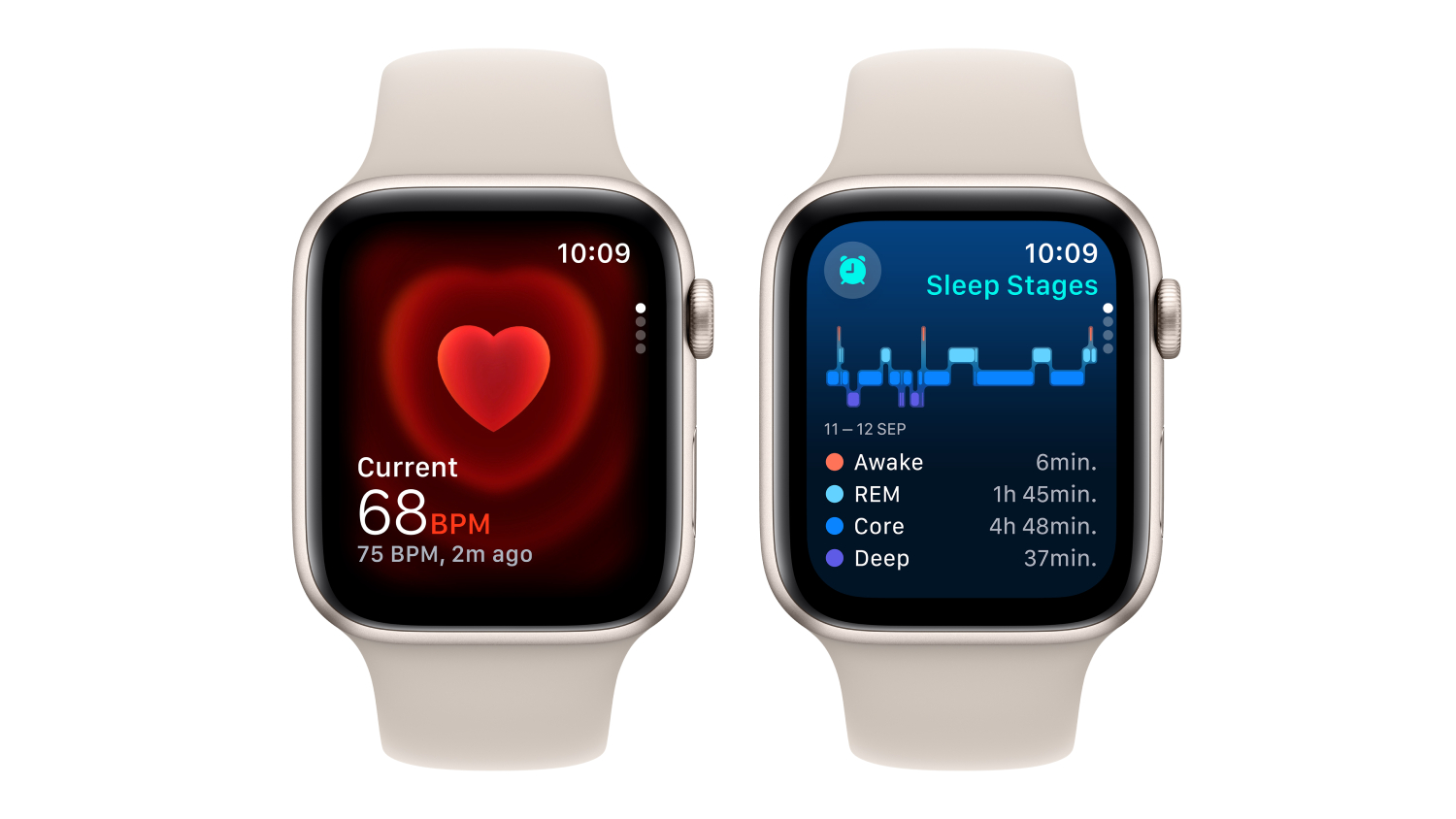 4Irregular rhythm notification requires the latest version of watchOS and iOS. It is not intended for use by people under 22 years old or those who have been previously diagnosed with atrial fibrillation.