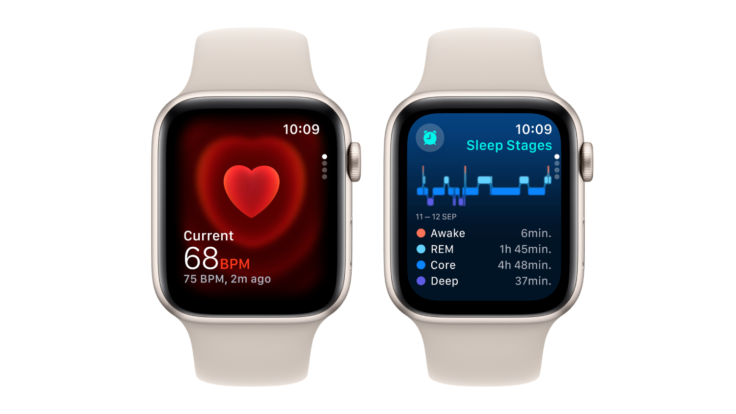 4Irregular rhythm notification requires the latest version of watchOS and iOS. It is not intended for use by people under 22 years old or those who have been previously diagnosed with atrial fibrillation.