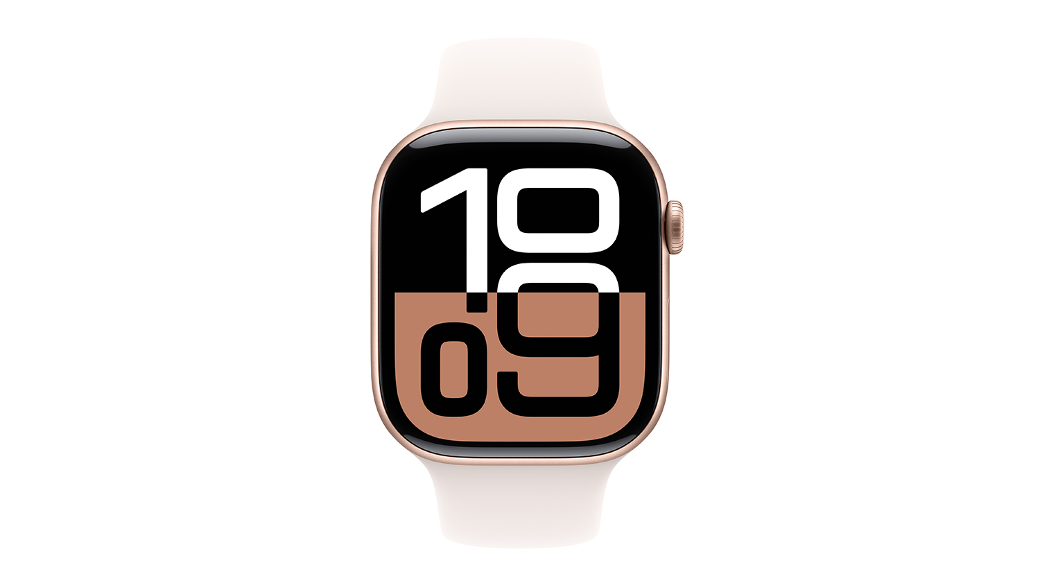 5Charge times are from 0 to 80 per cent and 0 to 100 per cent using the included Apple Watch Magnetic Fast Charger to USB-C Cable. Testing conducted by Apple in August 2024 using preproduction Apple Watch Series 10 (GPS) and Apple Watch Series 10 (GPS + Cellular), each paired with an iPhone; all devices tested with prerelease software, Apple Watch Magnetic Fast Charger to USB-C Cable (Model A2515) and Apple 20W USB-C Power Adapter (Model A2305). Fast-charge testing conducted with drained Apple Watch units. Times measured from the appearance of the Apple logo as the unit started up. Charge time varies with region, settings and environmental factors; actual results will vary.