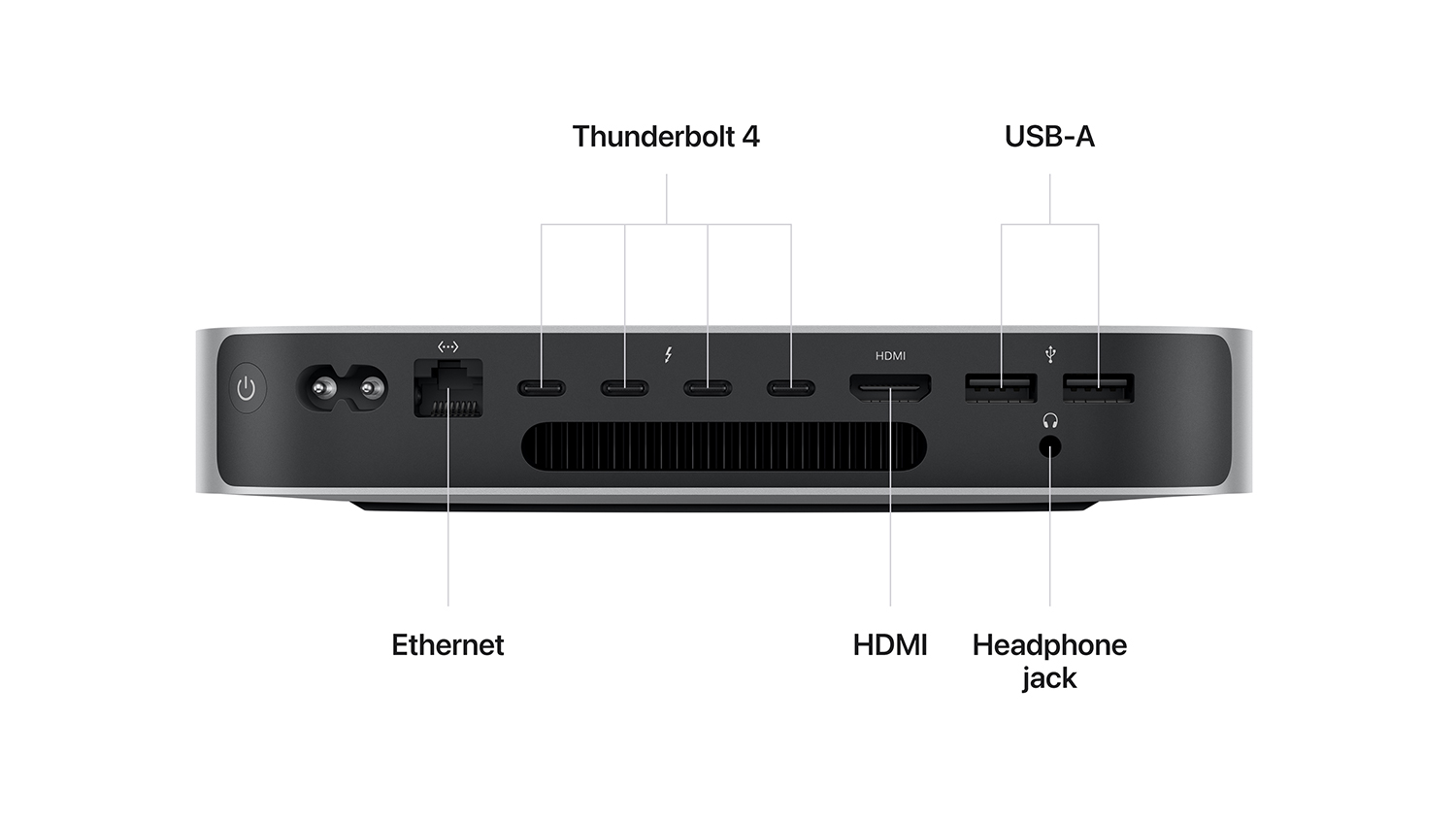 Now with M2 Pro, Mac mini crushes compute‑intensive tasks like editing massive images and 8K ProRes video. And with a wide array of ports to connect all your favourite peripherals, Mac mini is up for anything.