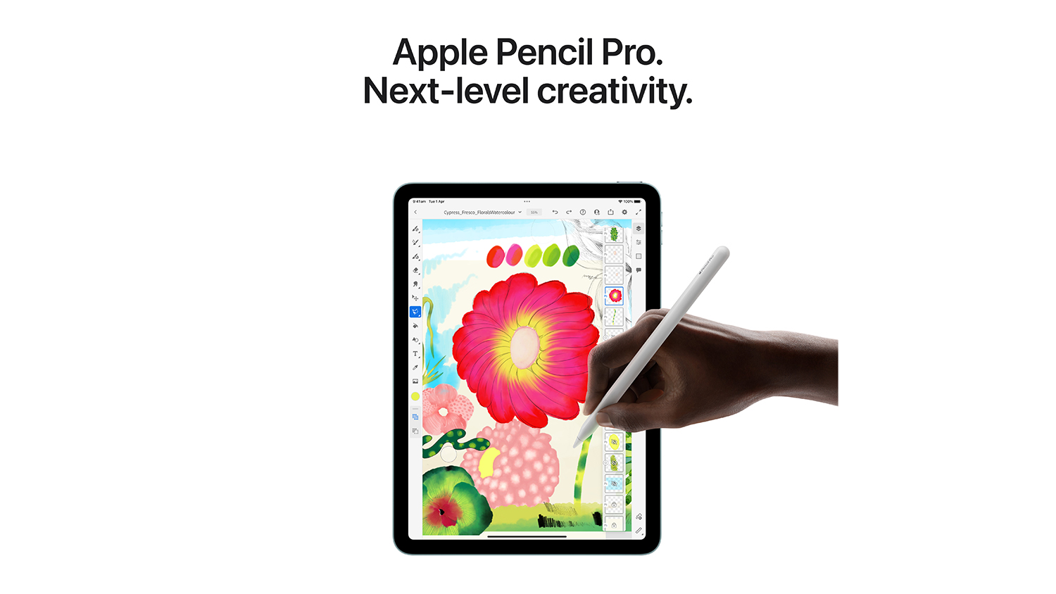 The 13-inch iPad Air.1 Built for Apple Intelligence.2 Supercharged by the lightning-fast Apple M3 chip. It features a stunning Liquid Retina display, a 12MP Center Stage front camera for even better video calls, and blazing-fast Wi-Fi 6E3 and 5G.4 And it works with Apple Pencil Pro, Magic Keyboard and Smart Folio, so you can multitask, study, work, play and create from anywhere.