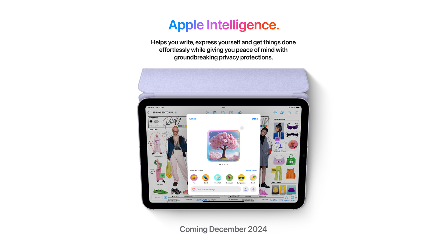 1Apple Intelligence will be available in beta on iPad mini (A17 Pro) and iPad models with M1 and later, with Siri and device language set to US English, as an iPadOS 18 update in October 2024. English (Australia, Canada, New Zealand, South Africa, UK) language support available December 2024. Some features and support for additional languages, like Chinese, English (India, Singapore), French, German, Italian, Japanese, Korean, Portuguese, Spanish, Vietnamese and others, will be coming over the course of the next year.