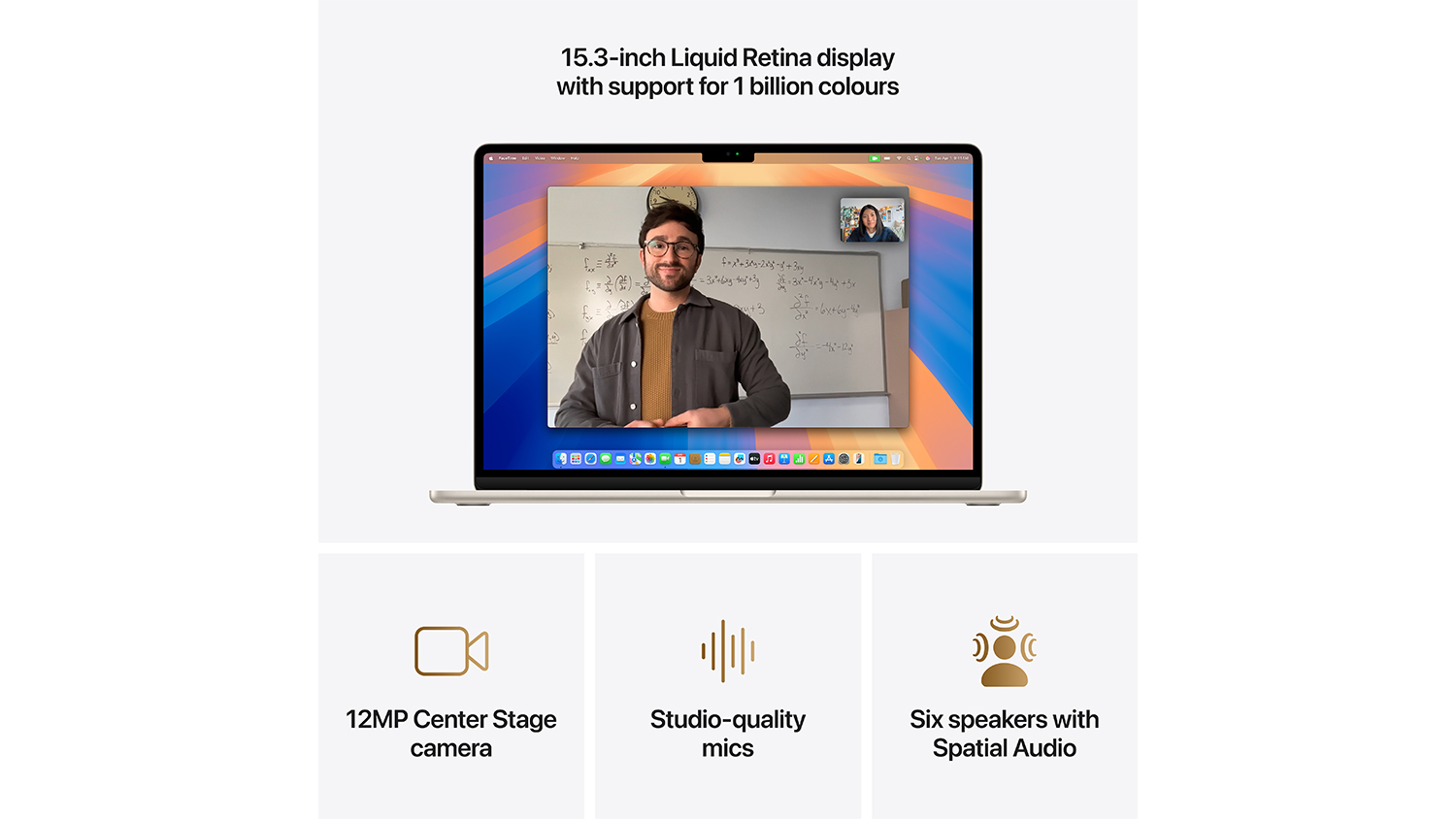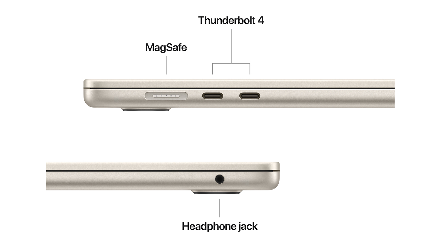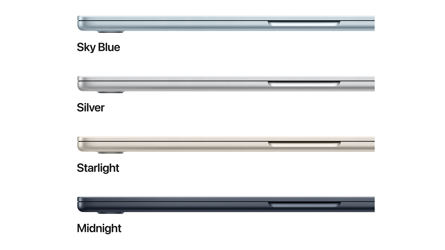 3The display on the 15-inch MacBook Air has rounded corners at the top. When measured as a standard rectangular shape, the screen is 15.3 inches diagonally (actual viewable area is less).
