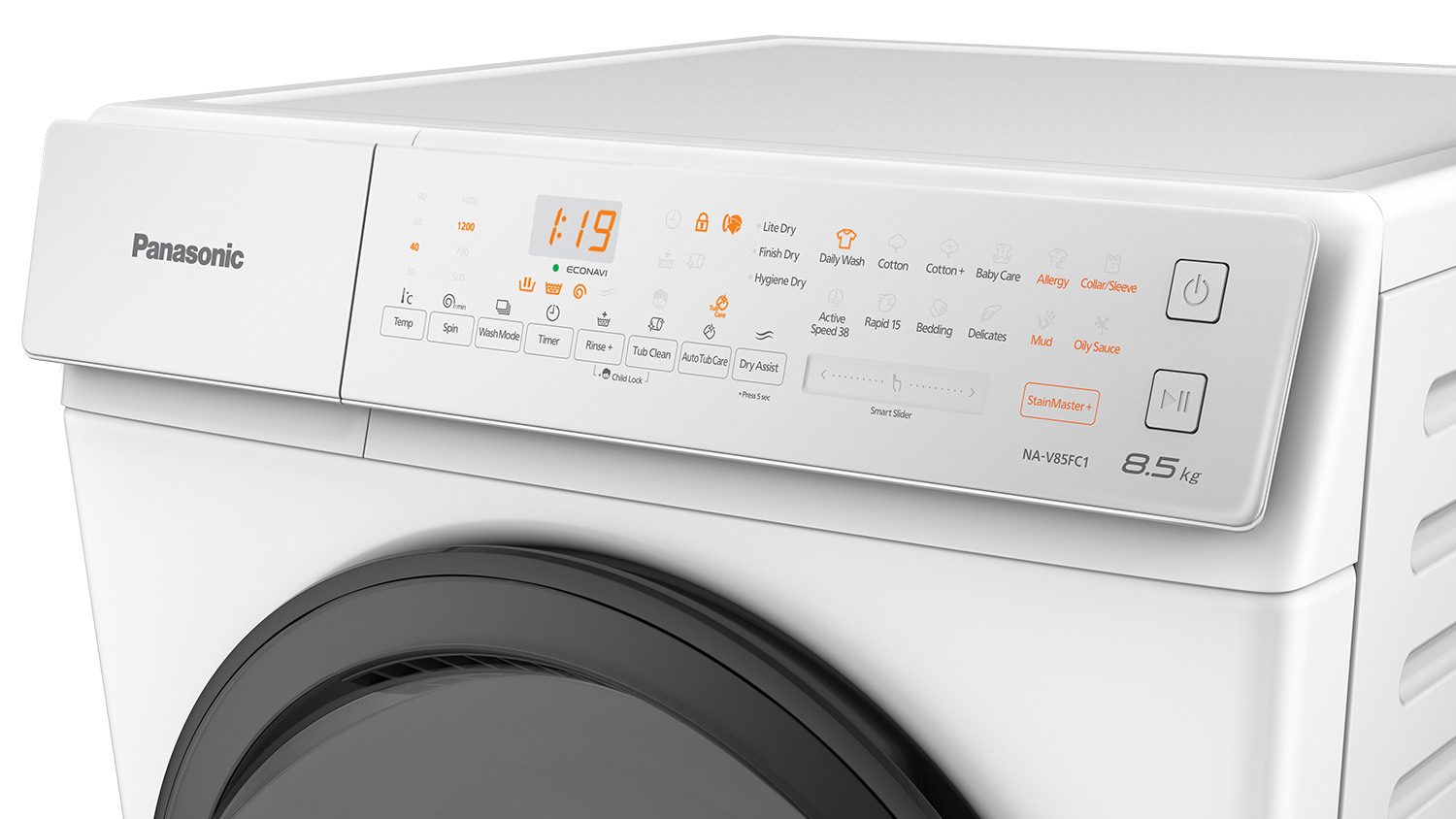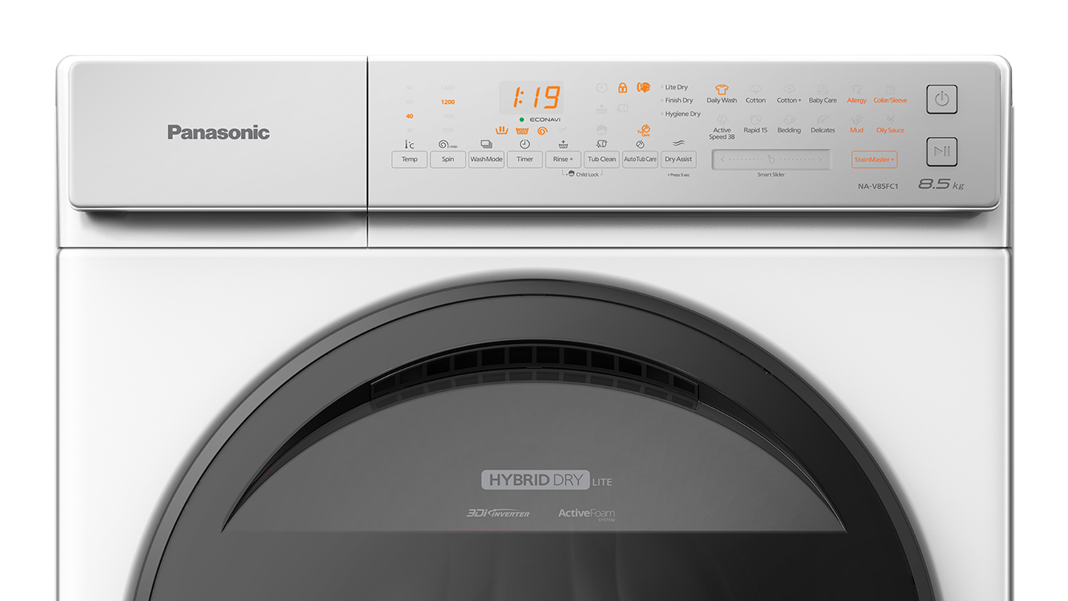 | Wash Programs | DailyWash, Cotton, Cotton+, Baby Care, Allergy, Rinse+, Tub Clean, Auto Tub Care, Dry Assist, Active Speed38, Rapid15, Bedding, Delicates, StainMaster (Collar/Sleeves), StainMaster(Mud), StainMaster(Oily Sauce) |