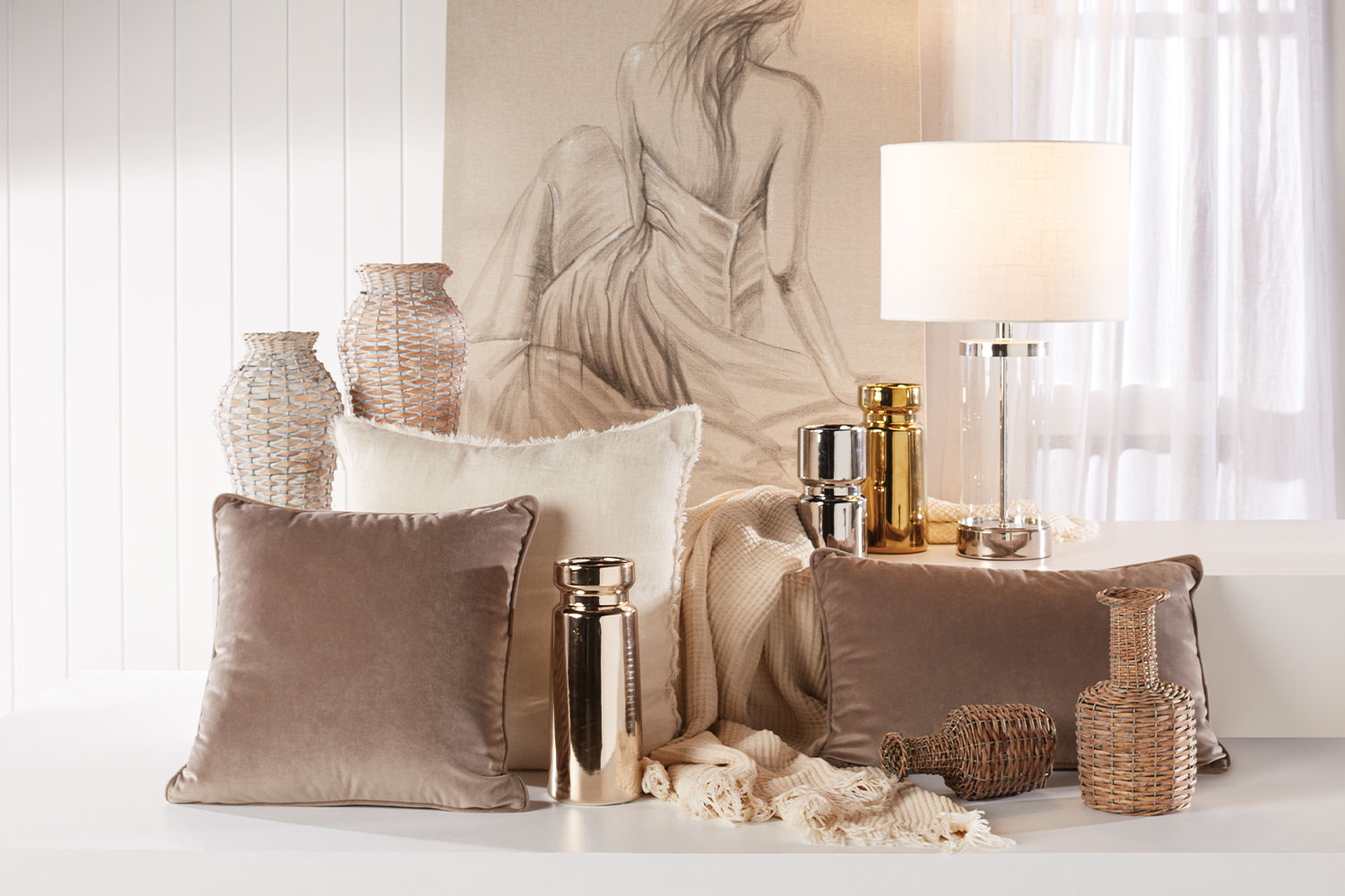 Experience the charm of the Kivari Woven Vase. Crafted from white-washed wicker, this piece by Stoneleigh & Roberson radiates a serene ambiance. Its size offers versatile styling options to complement your space.