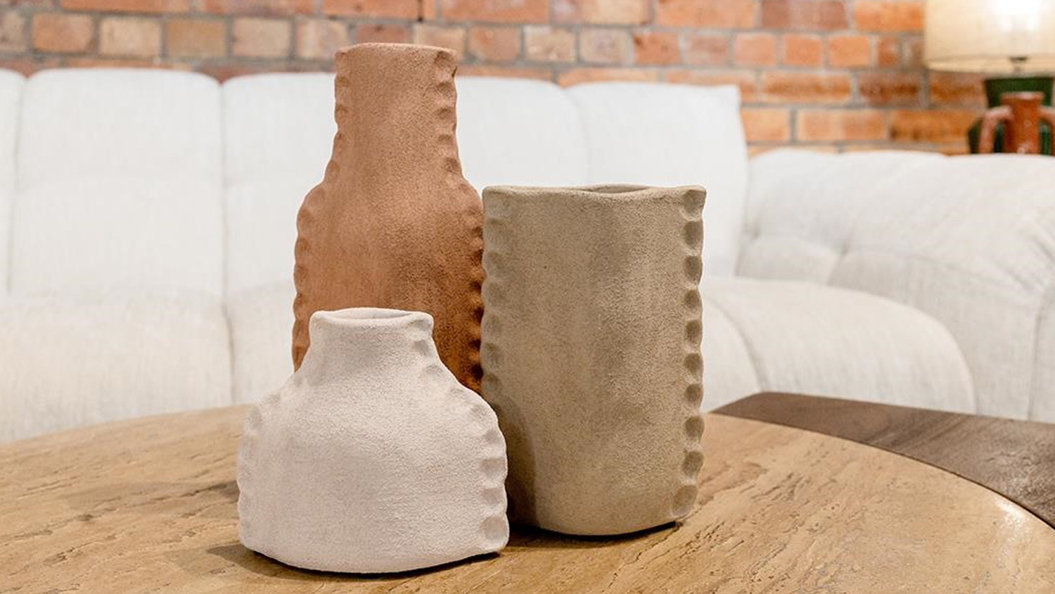 Please note: Price is for the Pinched Stoneware Vase 3 Piece Set only. Other accessories are not included.