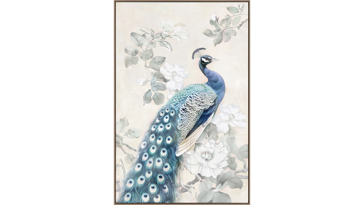 Enhance the sophisticated ambiance of your home with the beautiful Radiant Ruffle Canvas. Featuring a peacock framed in a champagne coloured frame, this print is a great way to add a splash of colour to your space.