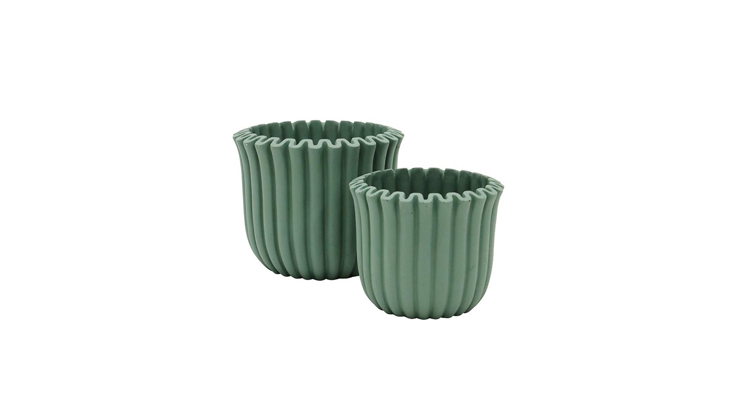 The ribbed design of the cement Wave Pot in Olive will add texture and style to your living space. Available in two sizes, perfect to mix and match!