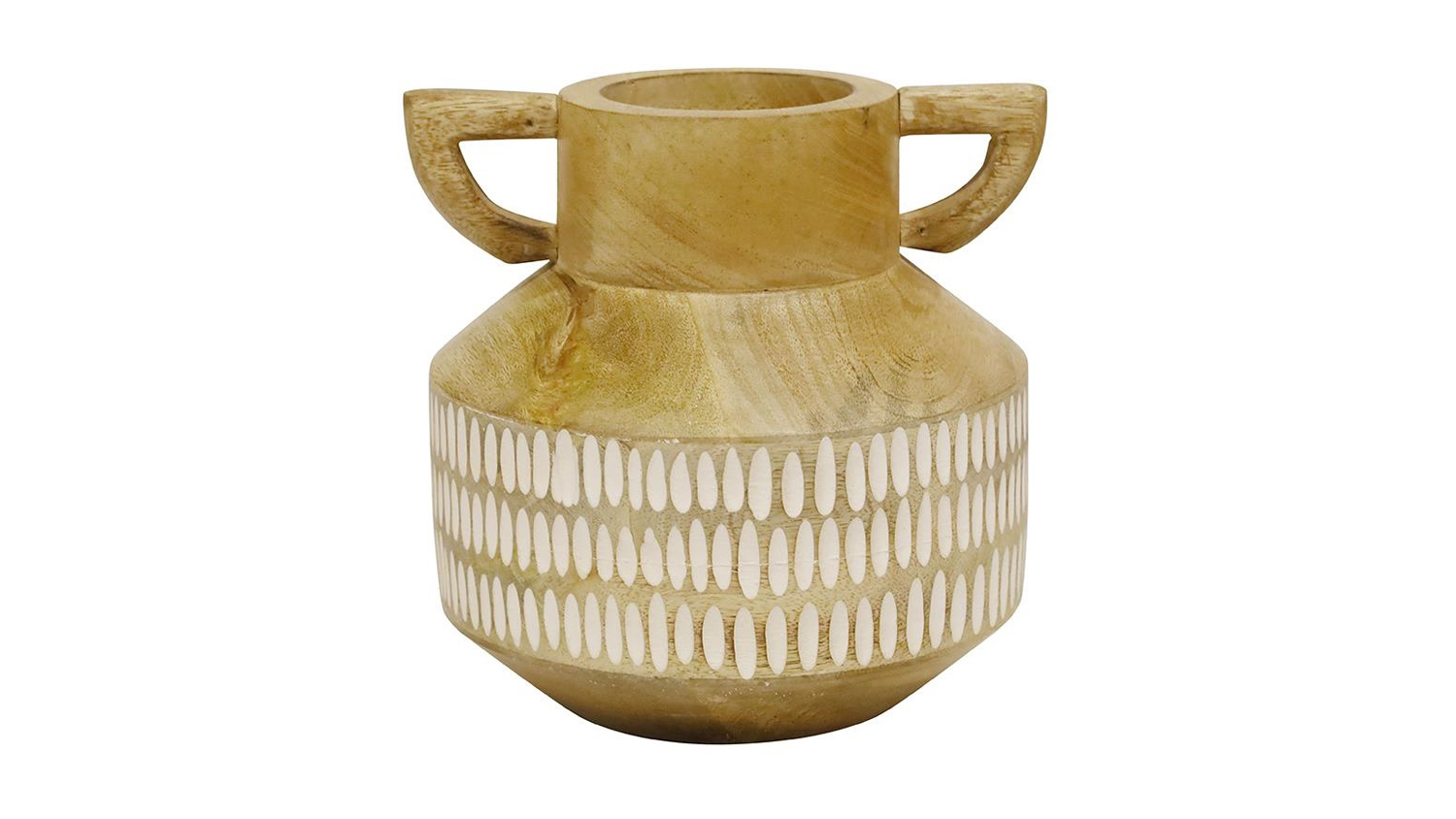 Immerse your surroundings in the elegance of the Zeltz Carved Wood Vase. Crafted from mango wood with a white wash finish, this piece by Stoneleigh & Roberson captures the beauty of natural elements with an artistic flair.