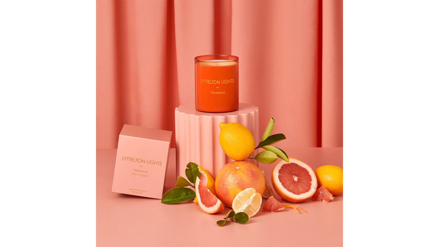Presenting the Lyttelton Lights 630g Scented Candle - Tōtaranui (Limited Edition). Infuse your space with an assertive blend of piquant grapefruit and sweet aromas of blood orange, rounded with crisp notes of apple, finished with base notes of musk and a touch of edgy bitterness.