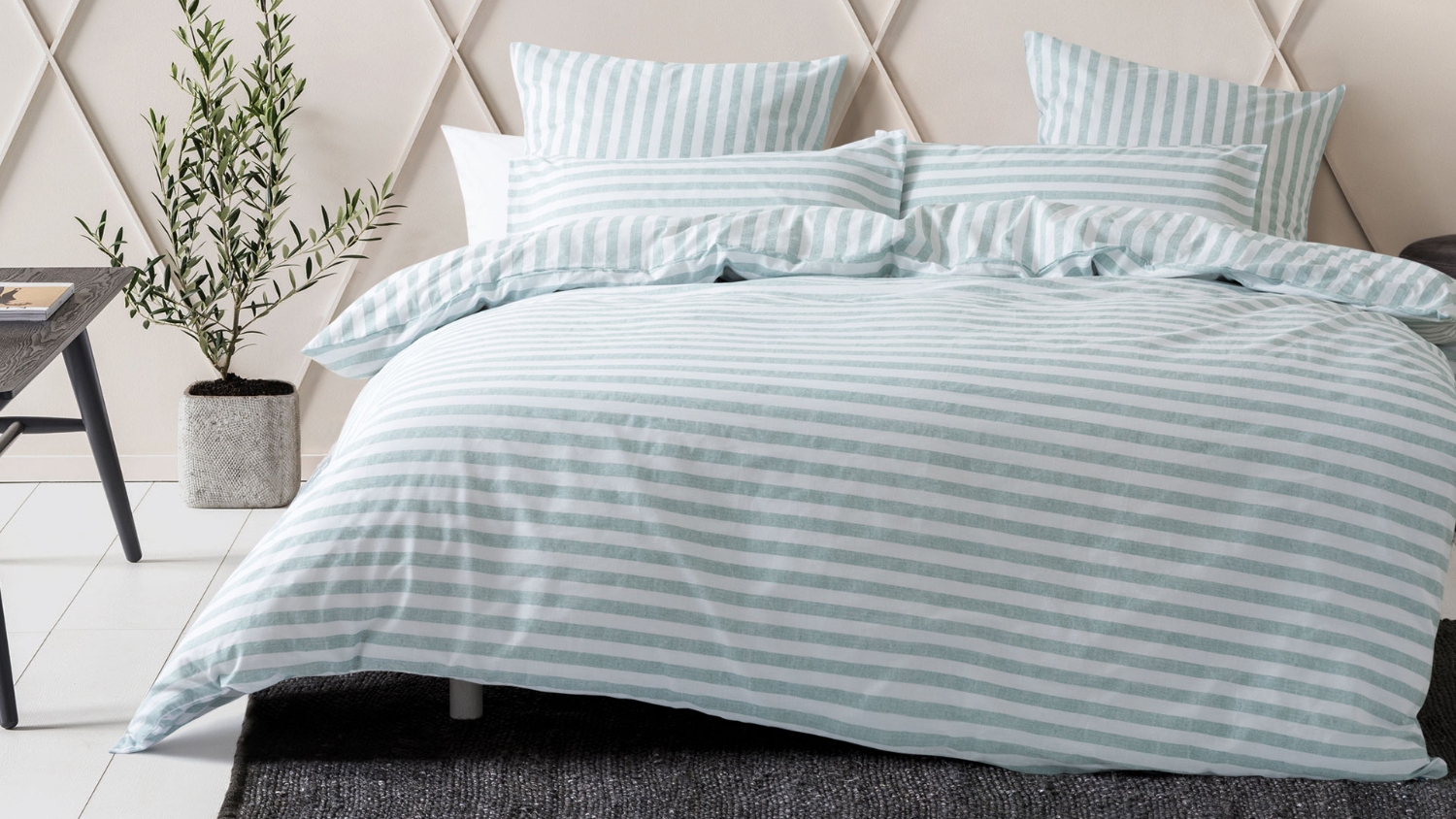 Transform your bedroom into a cosy and stylish oasis with this reinvented classic. Printed on cotton, Charlie is fully reversible with contrasting horizontal and vertical textured stripes, giving you the option to style your bed two ways.
