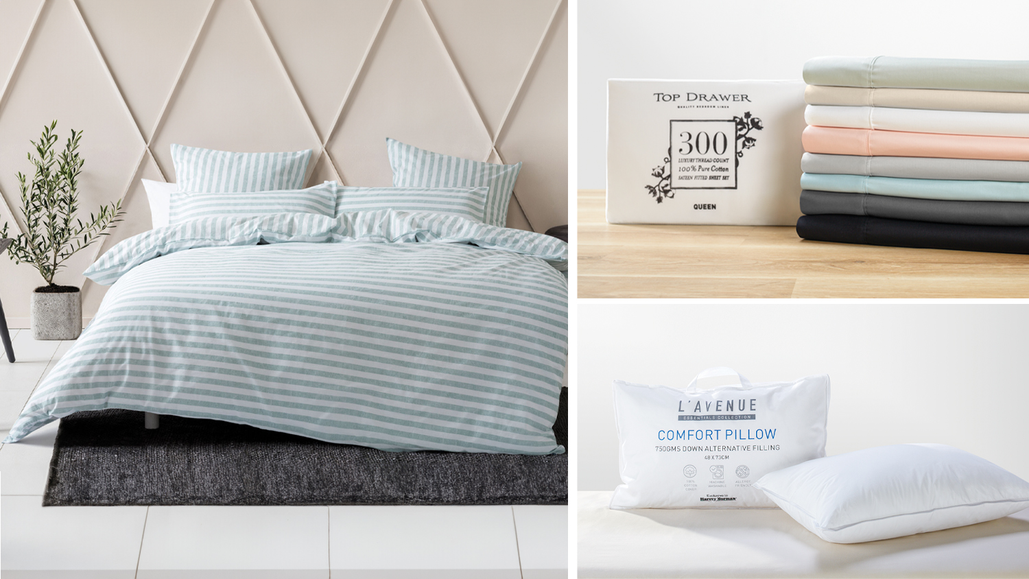 Featuring the Charlie Duvet Cover Set with 300TC 100% Cotton Sheet Set and 2 x Comfort Pillows Package.
