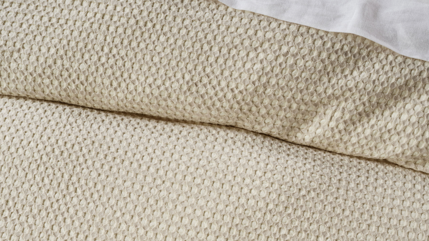 A soon-to-be classic, Cotswold is a harmonious blend of check and waffle textures. This cotton waffle is lusciously textured and voluminous, woven in a duo-tone to create a fresh, modern ‘check’ look. The pairing of white and oat is a timeless combination to suit any bedroom. Finished with a self-tailored edge and plain-dyed reverse, it pairs beautifully with the matching European pillowcases to complete the look.