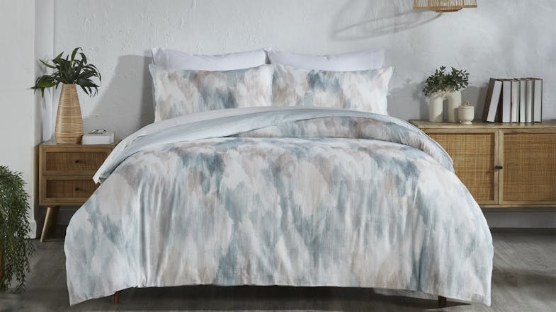 Presenting the Ella Seafoam duvet cover set. The muted tones of green and natural in a watercolour design beautifully capture the essence of Summer. Printed on 100% cotton, the Ella will be a great addition to refresh your bedroom.