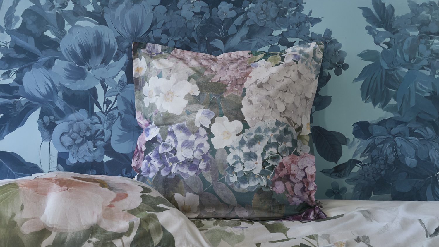 The Harlow European Pillowcase is designed to complement the Harlow duvet cover set. The European pillowcase has a similar pattern to the matching duvet cover set, but with a contasting green background. The reverse has a botanical pattern in silver to match the reverse of the duvet cover set.