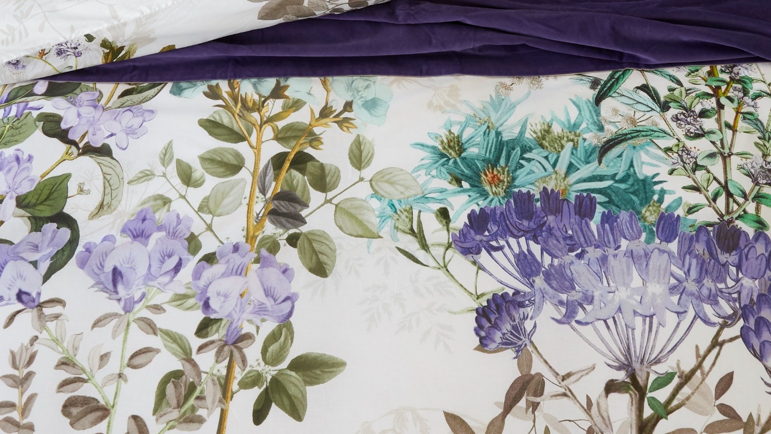 The colours of the Julia duvet cover sets pattern are achieved through the use of the latest digital technology, printed directly on a 100% cotton fabric with the same fabric on the reverse printed with a silver botanical pattern. Featuring concealed buttons on the duvet cover and the pillowcases are finished with an envelope closure.