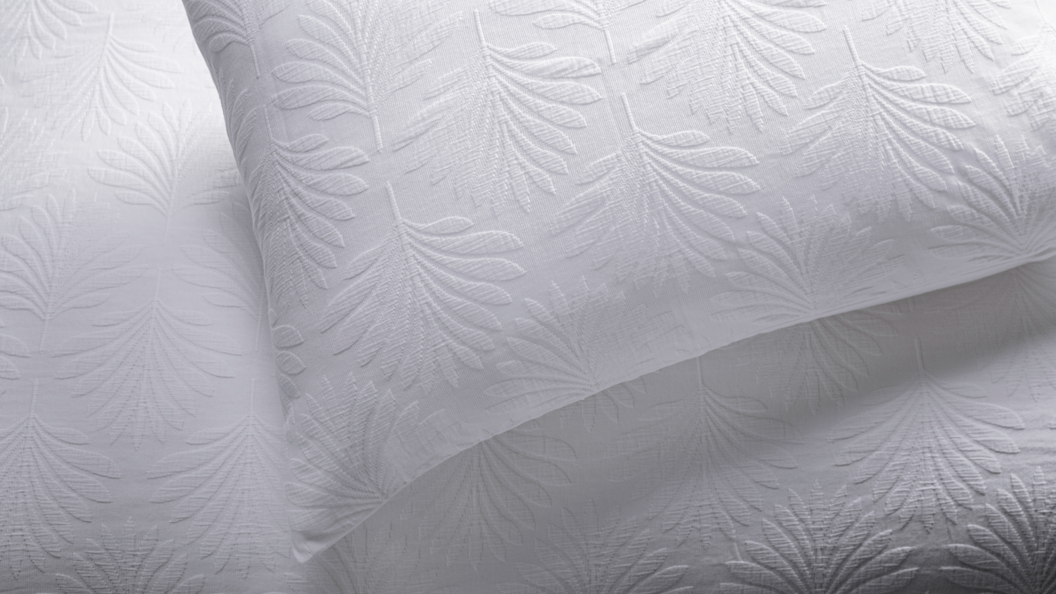 Bring the beauty of the tropics into your home with the Palms Duvet Cover Set. Featuring a raised palm motif woven into a white cotton damask, Palms captures relaxed resort elegance with a subtle textural finish. Fresh and breathable, this design brings on trend design into the bedroom, transforming your space into a calming retreat that feels both inviting and refined.