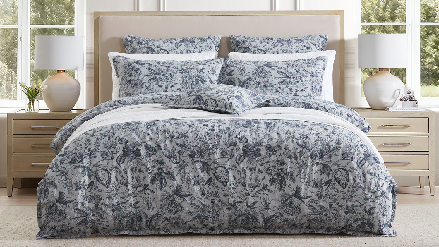 Designed to complement the Paloma Ink duvet cover, this Euro pillowcase highlights the intricate jacquard floral, echoing the collection’s depth and delicate dimension. The inky blue tones bring a sophisticated, timeless appeal, while the soft cotton construction ensures comfort and breathability. Finished with an elegant edge, it adds a refined, cohesive layer to your bedroom styling.