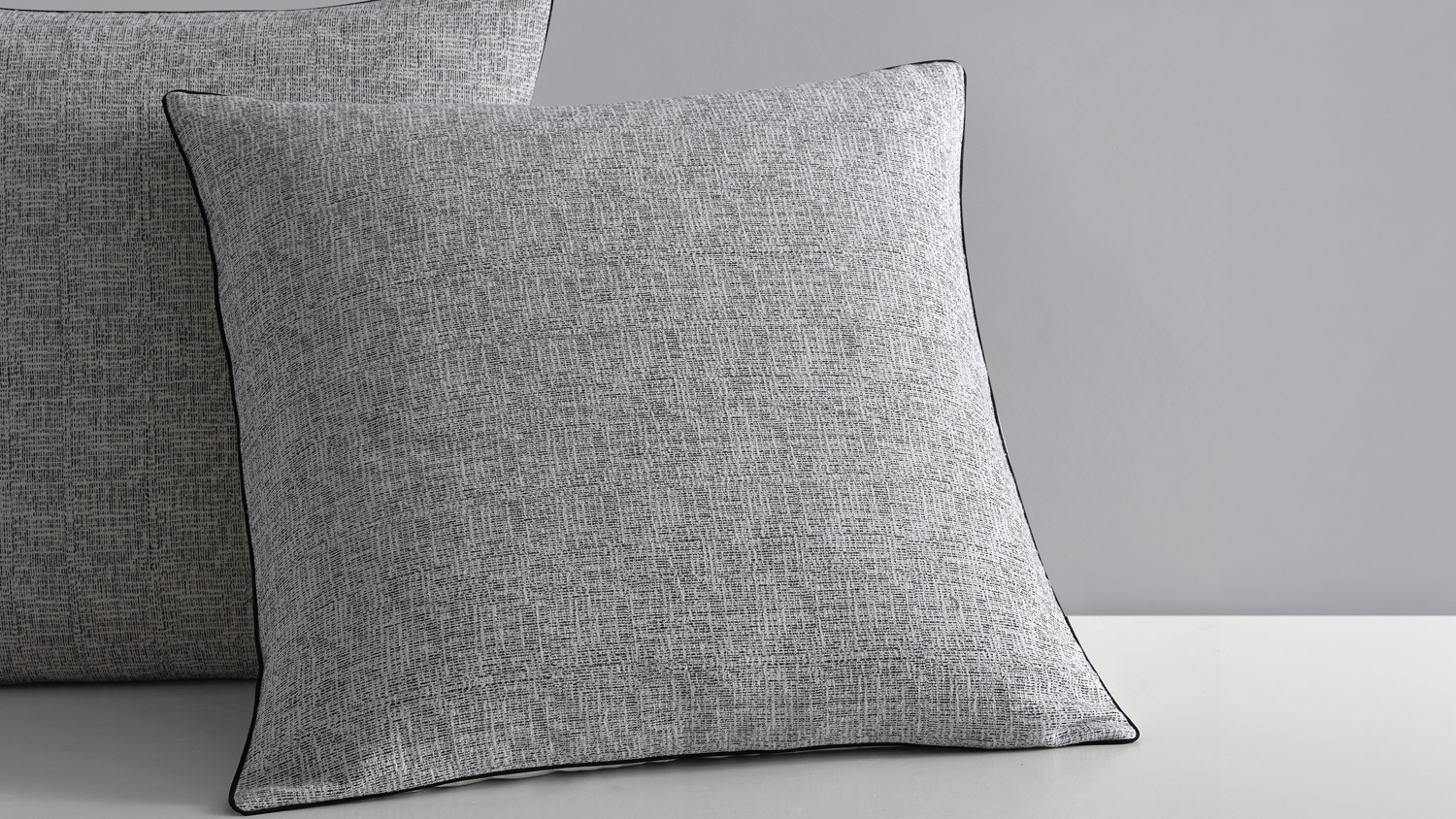 Crafted to complement the Remington Black duvet cover, this Euro pillowcase features the collection’s organic, textured weave in a sleek, understated tone. Its matelassé finish brings subtle depth and softness, while the black corded trim adds a clean, contemporary edge. A modern and sophisticated accent that completes the Remington bedroom look with refined simplicity.