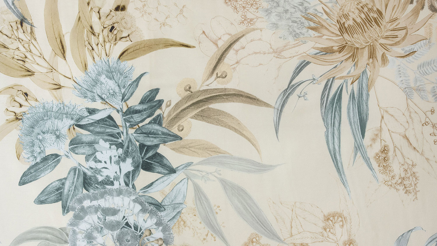 Bring the serene charm of botanical landscapes into your bedroom with Sorrento. This beautifully detailed print captures native flora in a soft, earthy palette of eucalyptus green, teal and gold, layered across a warm, natural base. Printed on smooth cotton sateen, Sorrento offers a calming statement when paired with the coordinating European pillowcase.