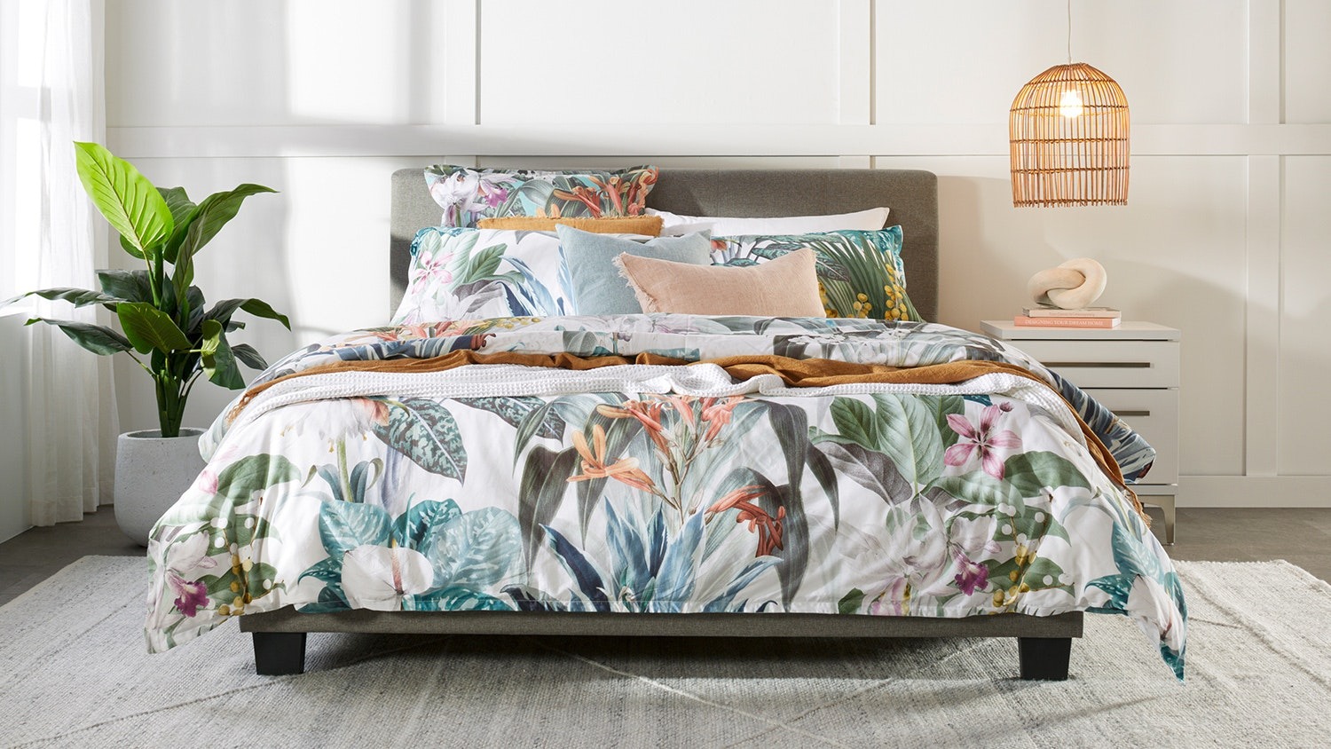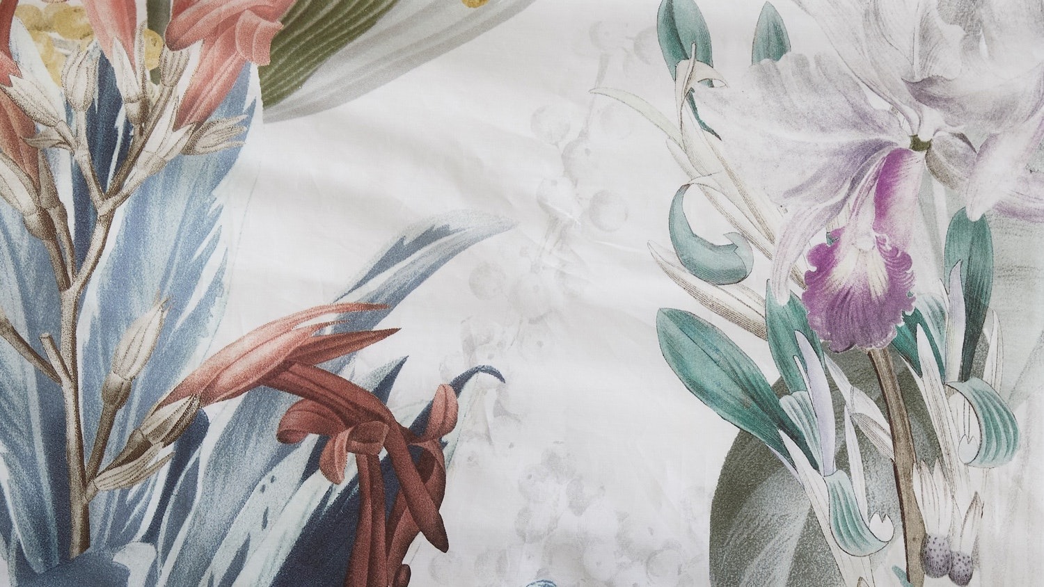 Introduce a touch of sophistication to your bedroom with the Verdure Duvet Cover Set. Featuring lush tropical leaves and exotic flowers printed onto 100% Cotton, this luxurious set will transport you to a world of elegance. Pair with the matching European pillowcase to complete the look.