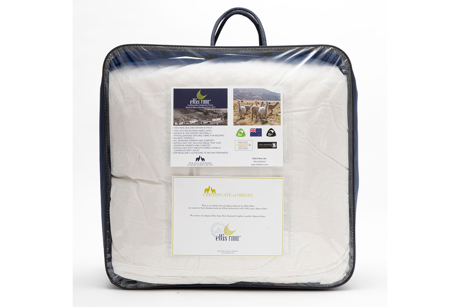 The Alpaca Duvet Inner by Ellis Fibre is made with the finest quality of 100% New Zealand alpaca fibres. Benefits of this duvet inner include sustainability, non-allergenic, odour and mildew resistant and is lighter than wool. Alpaca fibres boast one of the highest moisture-wicking properties. Absorbing body moisture and releasing it into the air to keep you dry and warm at night makes it suitable for all seasons. Made using 100% sateen cotton cover with a 400 thread count.