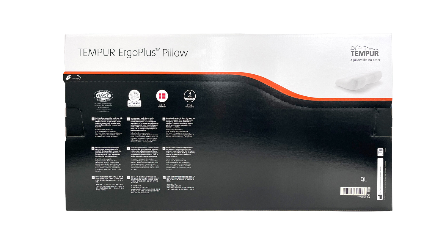 The Ergo Plus Pillow by Tempur features a curved edge that is lower in the middle and higher on the sides to provide proper neck alignment whether you sleep on your back or on your side. The forward-tilting edge also gives ideal support to the upper vertebrae and the front edge is tilted forward to cradle your upper vertebrae for superior comfort and therapeutic support there as well.