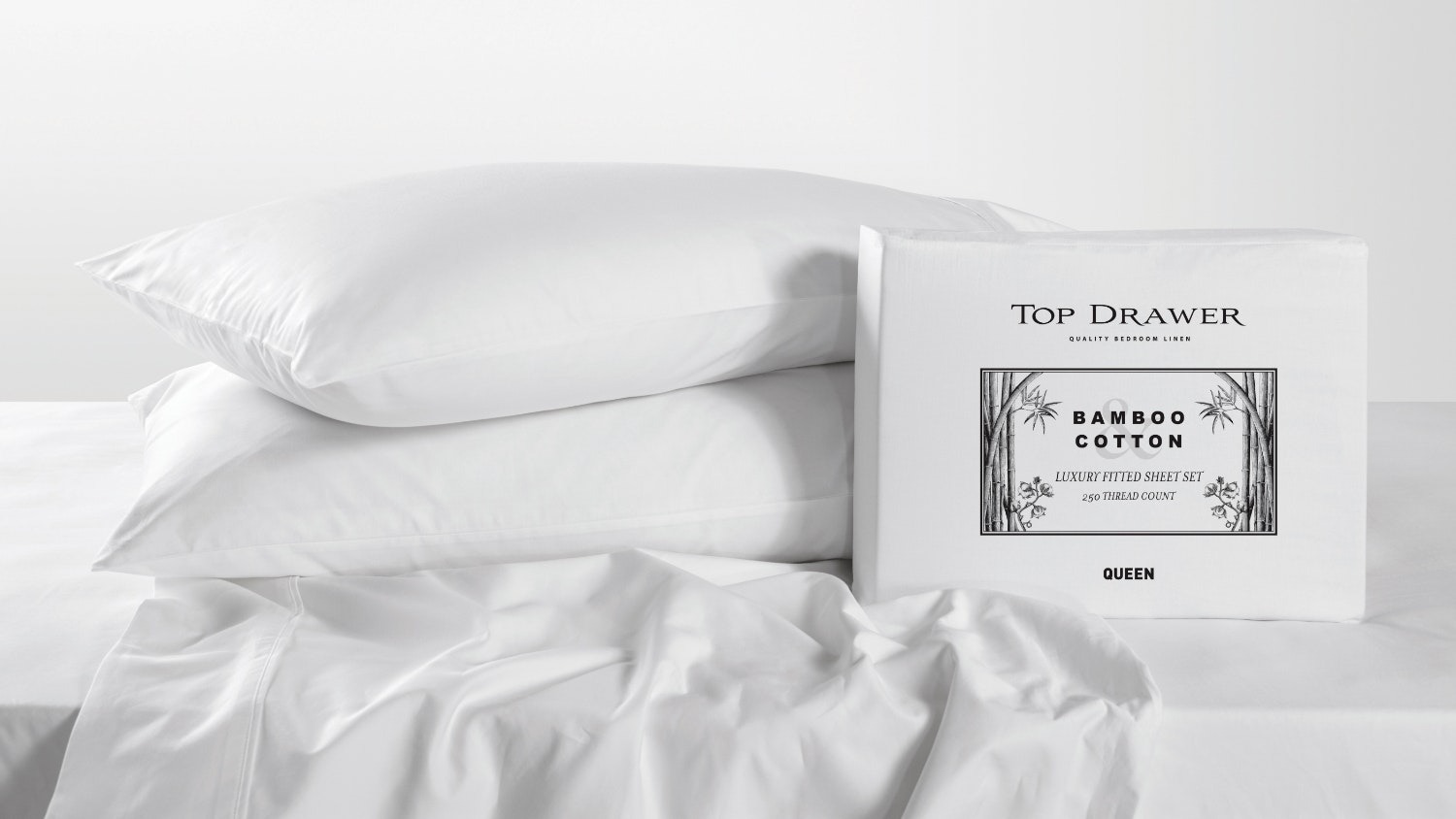 Stay cool with the lightweight 250 thread count, bamboo cotton blended sheet set by Top Drawer. Combining the cool, smooth feel of viscose from bamboo, with the durability, breathability and easy care of cotton. This sheet set is ideal for the warmer months or hot sleepers. Those who prefer a lightweight feel will enjoy this sheet set all year round.