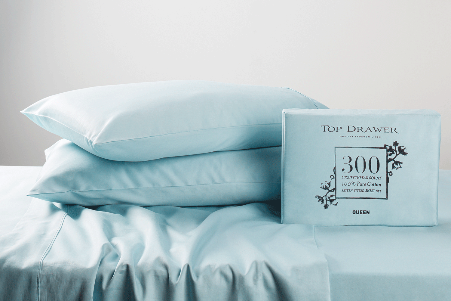 Stay cool in summer, and warm in winter with the beautiful 300 thread count, 100% cotton sheet set by Top Drawer. Top Drawer is well known and trusted for top quality bed linen. This sheet set is made using superior long cotton fibre that is spun into an incredibly durable fine yarn and woven into a 300 thread count plain weave fabric. As a result this sheet set has an amazing crisp feel and is smooth against the skin that will increase in softness after each wash.