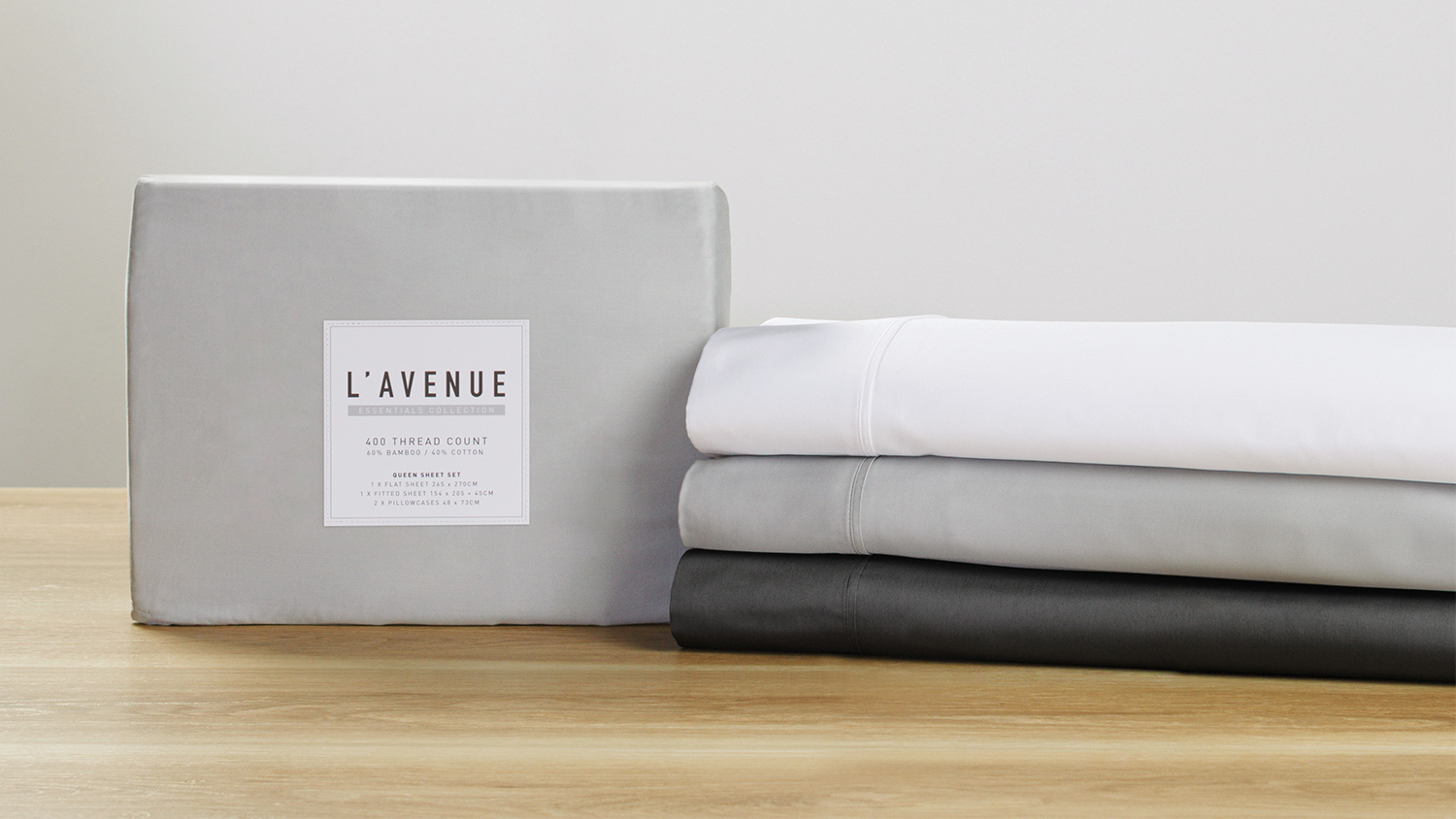 The fitted sheets have a 45cm wall to accommodate most mattress depths, and the flat sheets are finished with a cuff and piping.