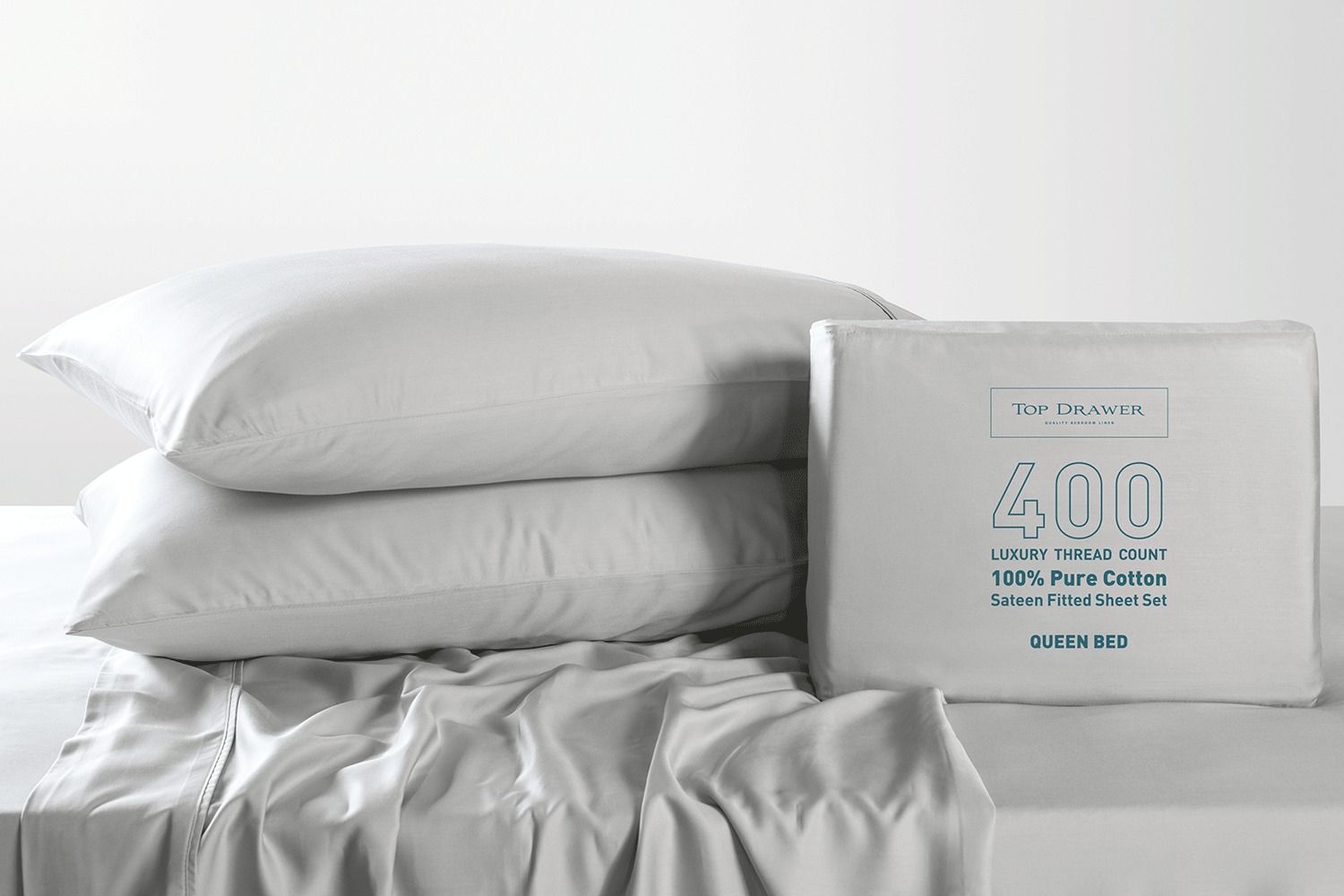 400TC Silver Cotton Sateen Sheet Set by Top Drawer - 45cm drop
