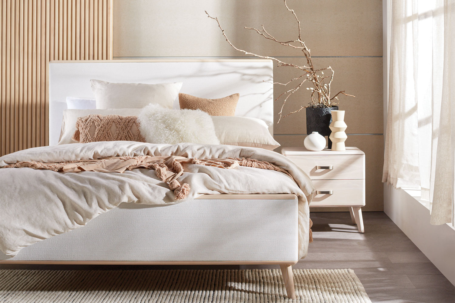 An attractive display of modern living and bringing a feeling of warmth into your space, the Melba range features clean lines and simplistic style will instantly add a sophisticated feeling to your bedroom. Available in a range of upholstery and stain finishes, the Melba range will suit any décor.