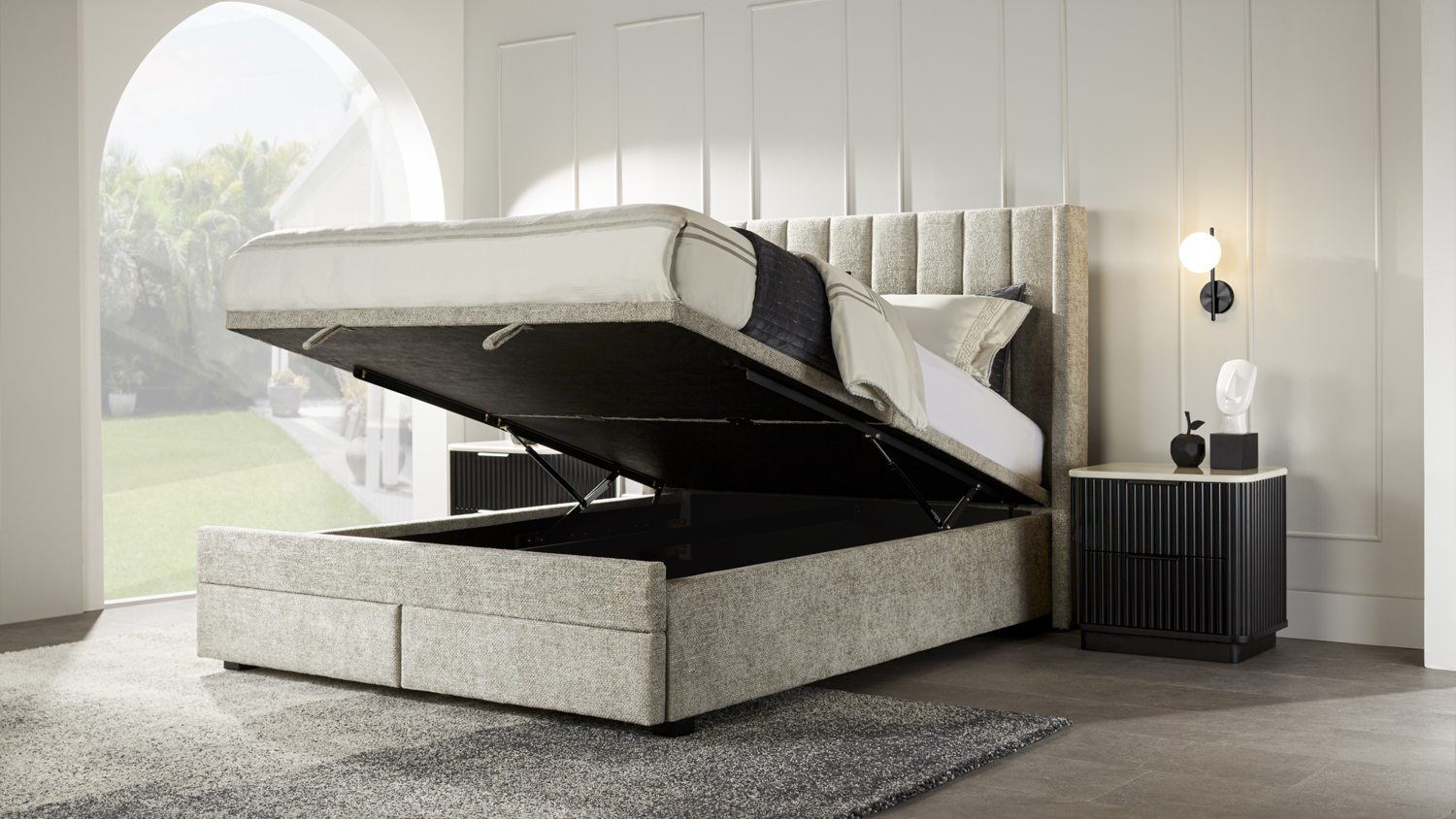 Please note: Price indicated is for one Orbit Queen Upholstered Gas Lift Storage Bed Frame only. Mattress, bed linen and accessories are not included.