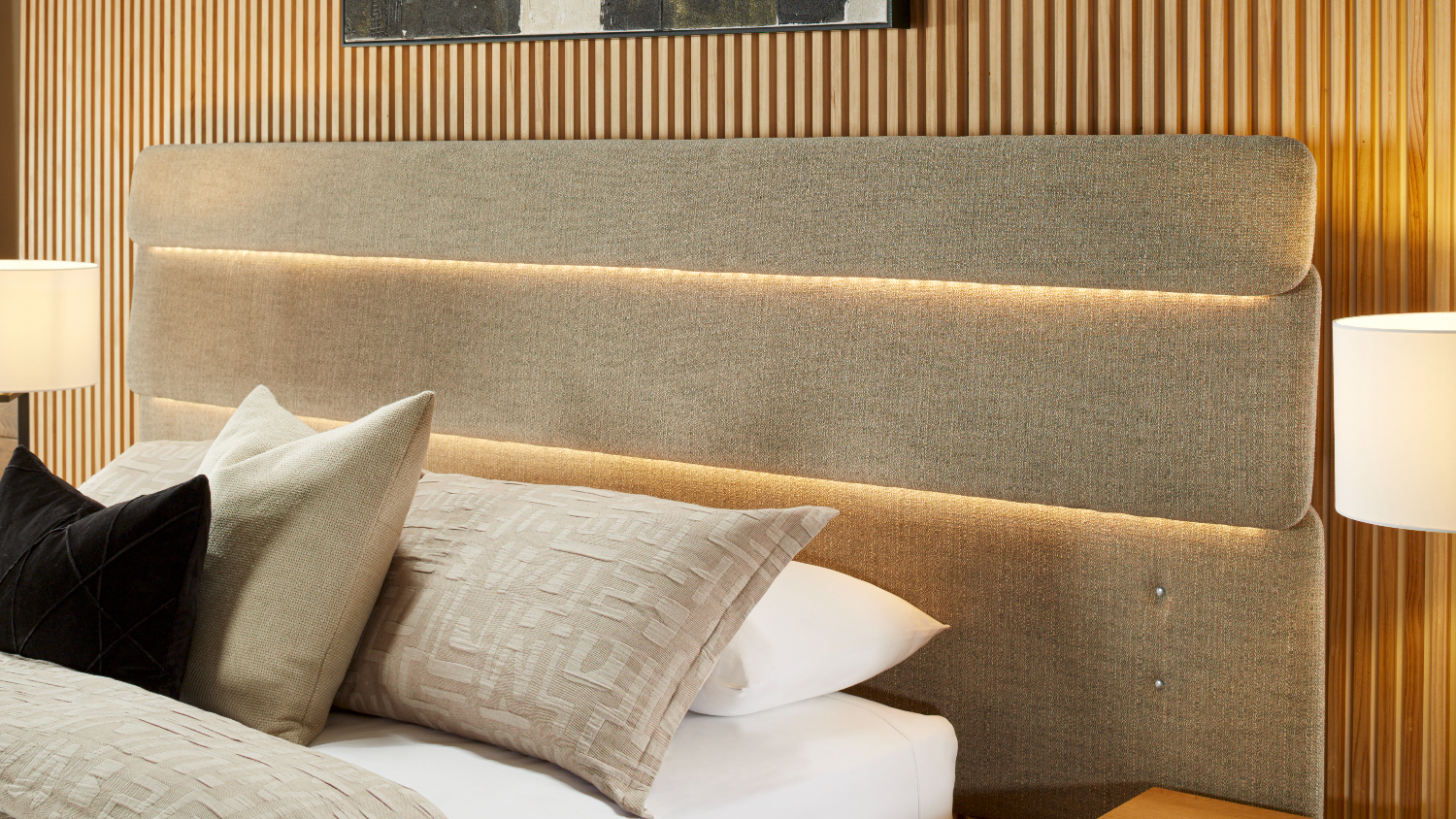 Ambient Headboard LED Lights - Subtle LED lighting accents under the tiered headboard layers