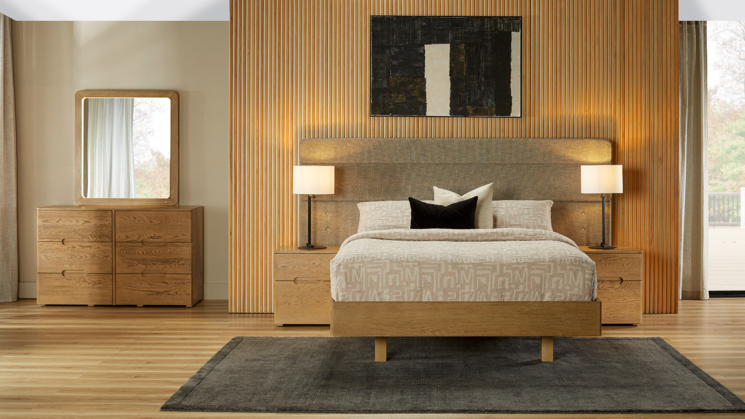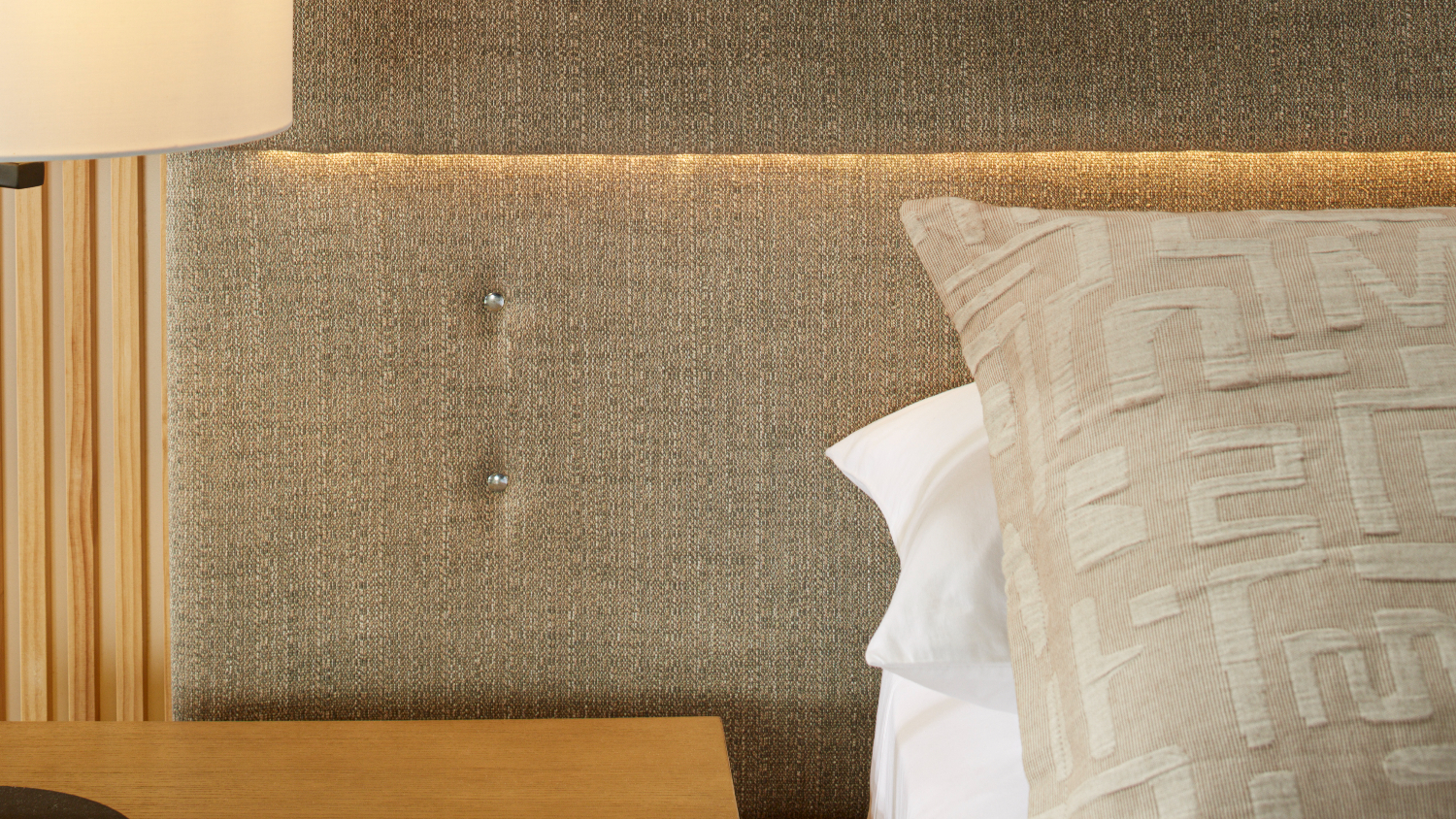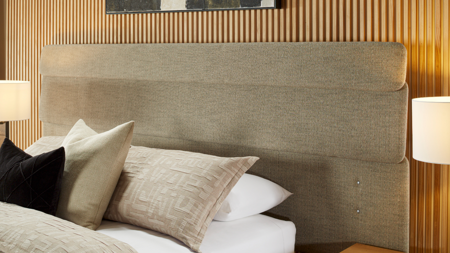 Ambient Headboard LED Lights - Subtle LED lighting accents under the tiered headboard layers