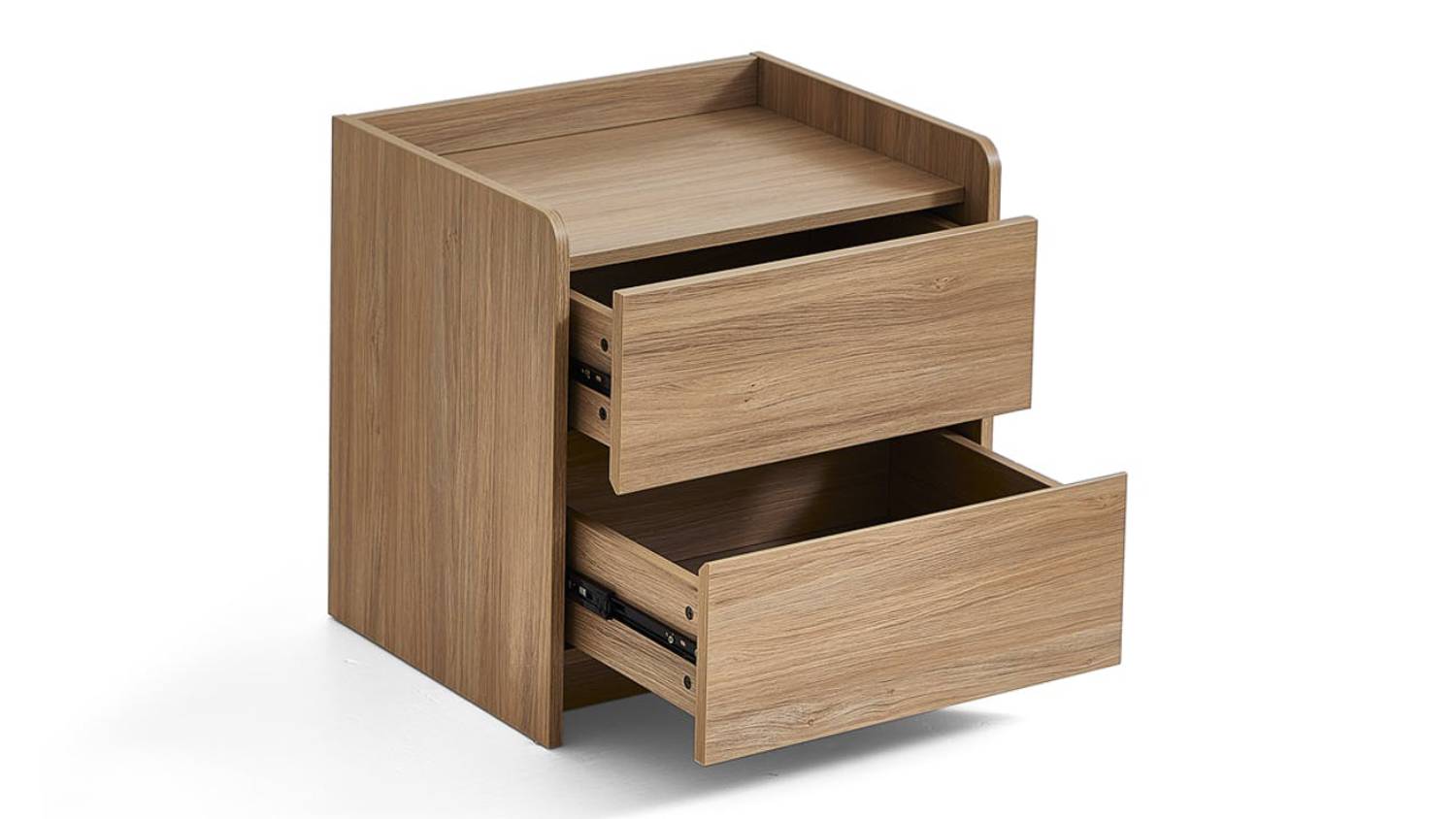 The Chelsea bedside features a compact, modern design with a clean oak-look finish and two practical drawers. Built for everyday use, it provides easy-access storage and a flat top for bedside essentials.