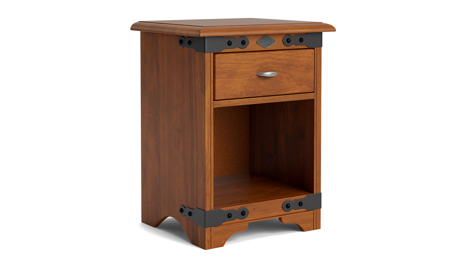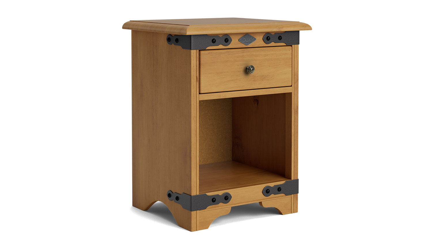 The Nordic 1 Drawer Bedside Table comprises solid pine timber with a beveled edge and forged iron trim, resulting in a timeless look that harmonises with traditional interiors. With a shelf and dovetailed drawer, your storage will always look attractive. From the initial design, right through to the unique, hand rubbed polishing process, this bedroom table has been crafted to bring enduring quality and style to your home.