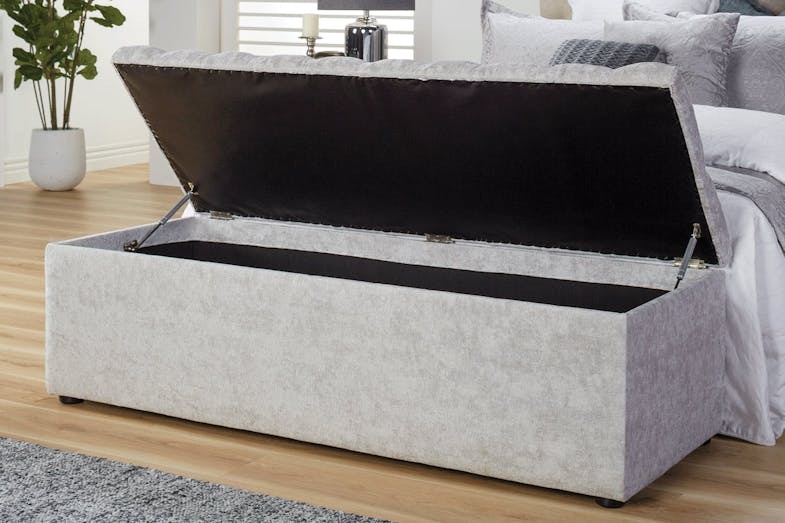 Create the feeling of luxury and sophistication with the custom-made Kara Diamonte Buttons Blanket Box. This opulent blanket box features diamonte button detailing that creates a stunning focal point in any stylish bedroom and is a handy storage option ideal for storing blankets, cushions, and other bedding accessories.