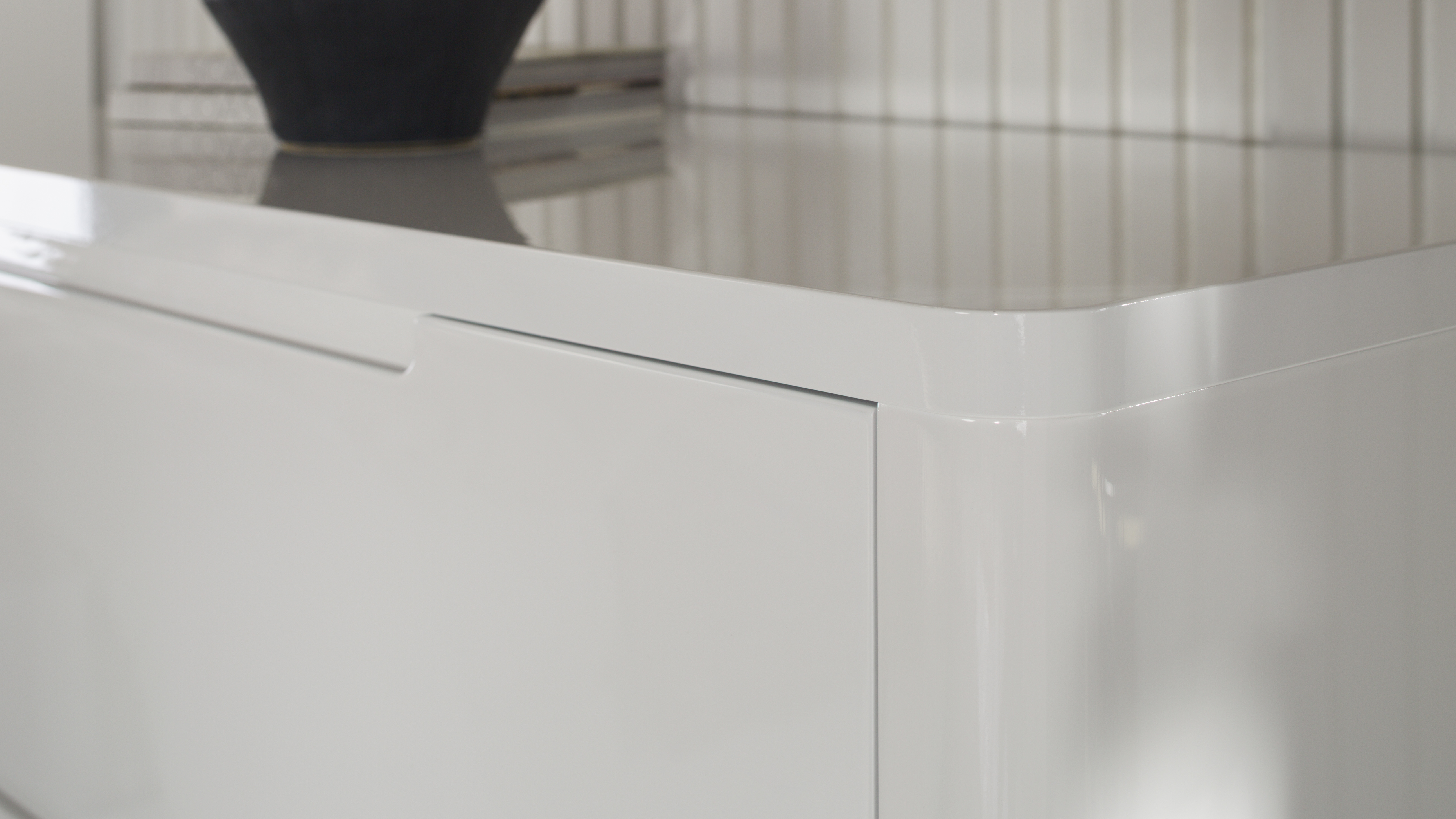 The clean and modern lines of the Adanya 4 Drawer Tallboy makes it the perfect addition to any contemporary décor. With smooth curves in high gloss white, the four spacious drawers allow for convenient storage with ball-bearing metal runners for drawers that glide open and close smoothly.