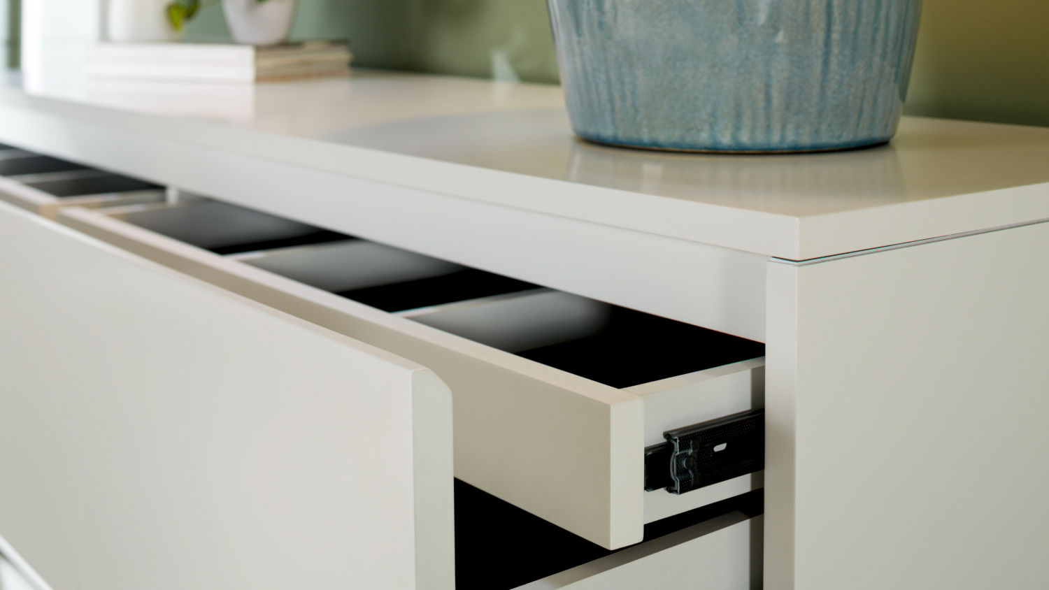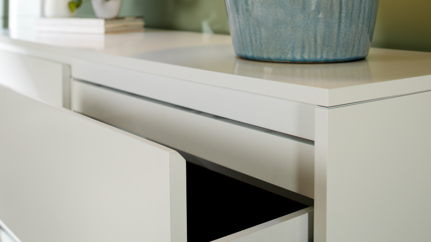 Presenting the Capri 6 Drawer Lowboy. Featuring a minimalist, handle-free design, it blends seamlessly into contemporary interiors. Six spacious drawers and a hidden top drawer with built-in compartments provide ample space for storing your clothing and other necessities.