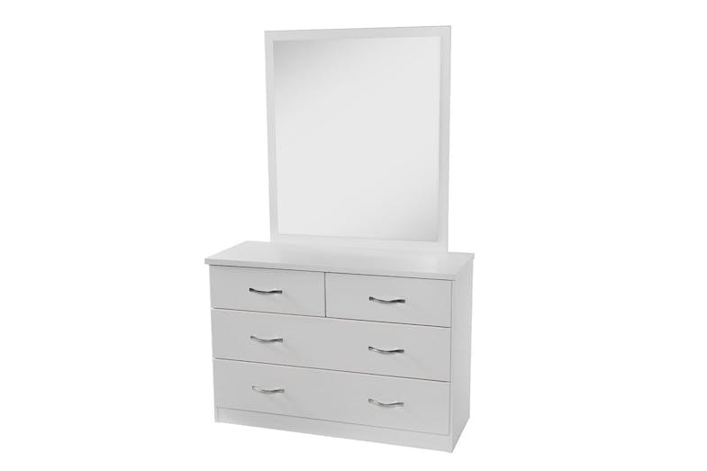 The Dominic 4 Drawer Dresser and Mirror offers quality and affordability wrapped into one! For a modern, stylish look choose the Dominic Dresser and Mirror with 4 drawers for great storage. Perfect for your bedroom, teens rooms, student's dorms and more.
